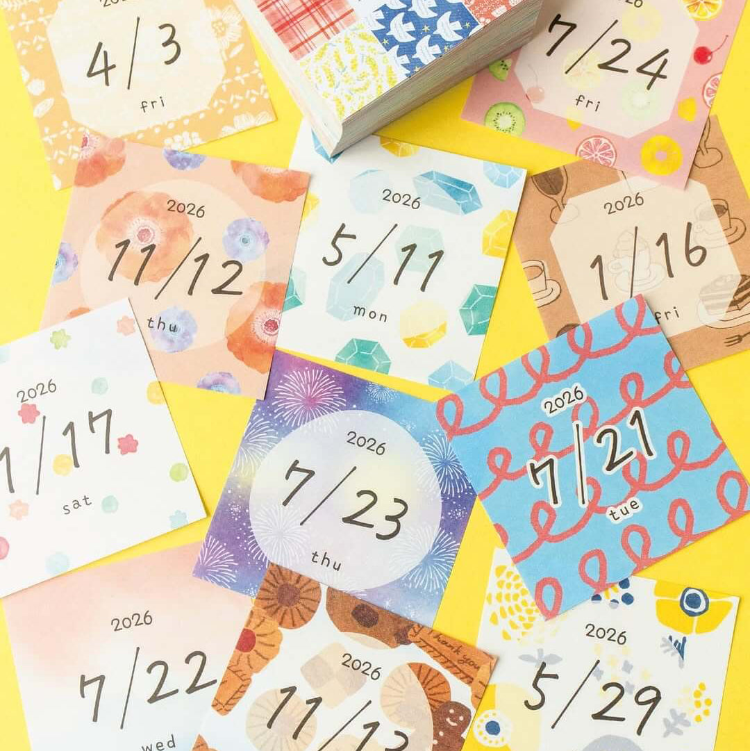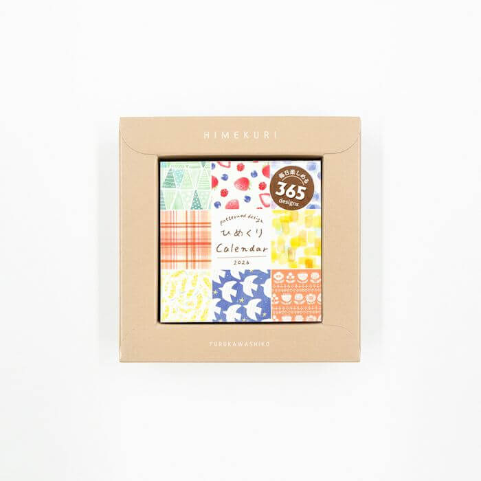 This mini daily calendar by Furukawashiko features 365 sheets, each printed with a different charming design. From soft floral patterns to cheerful seasonal motifs, every page reveals a new scene that reflects the simple pleasures of everyday life in Japan.