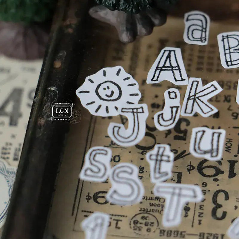 This clear stamp set features Lin Chia Ning’s signature hand-drawn alphabets and numbers, designed with an organic, slightly imperfect line quality that feels warm, playful, and personal. Each character carries its own rhythm, making it ideal for adding titles, dates, labels, or short words to your journal pages.