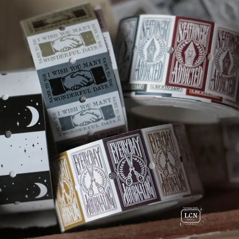 Whether layered, lined up, or used sparingly, these stickers add visual structure and character to journals, collage works, gift wrapping, and packaging. Used on their own or paired with stamps, washi tapes, and paper ephemera, they bring a subtle graphic presence without overwhelming the composition.