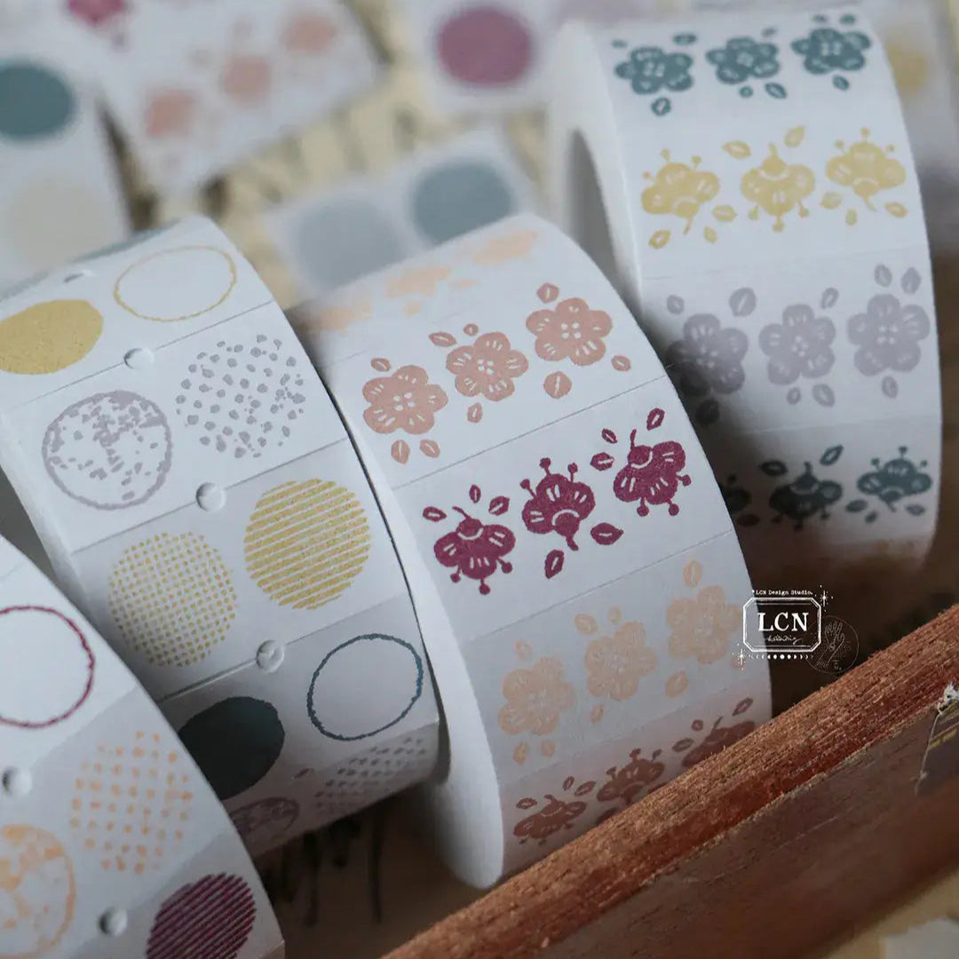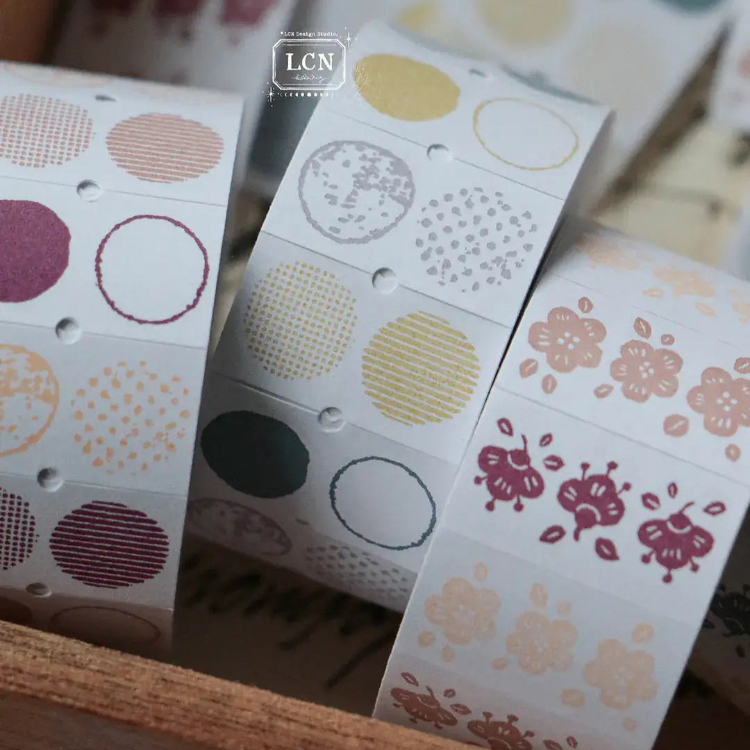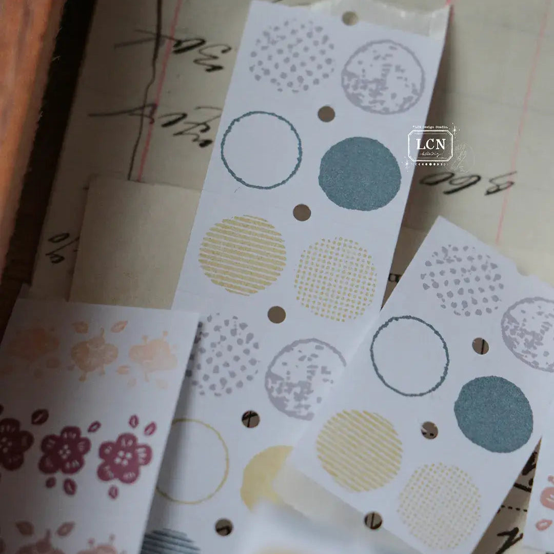 Whether used individually or arranged in sequences, these stickers add rhythm and visual interest to journals, collage pages, gift wrapping, and packaging. Easy to layer with washi tapes, stamps, or paper ephemera, they bring a gentle graphic presence without overpowering the page.