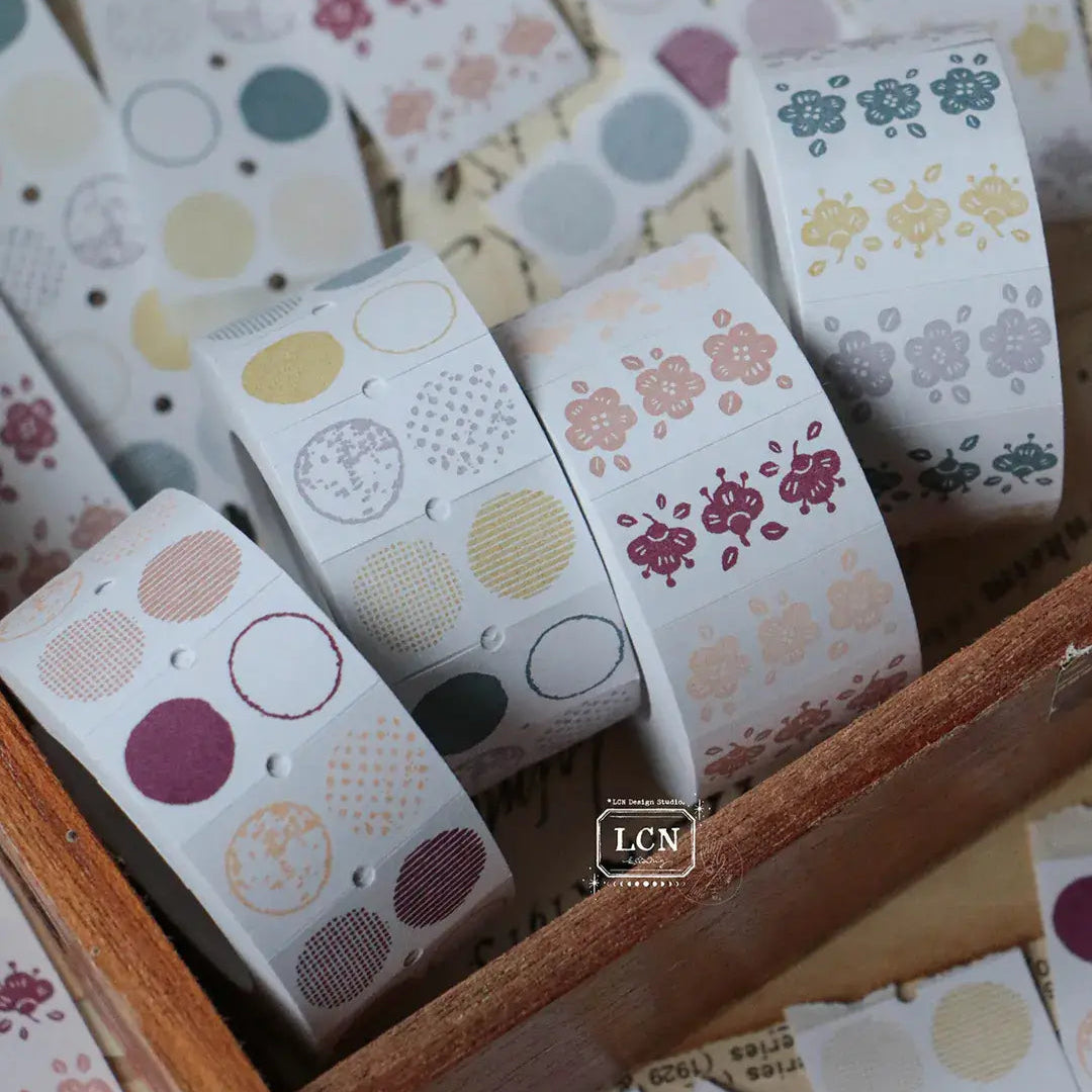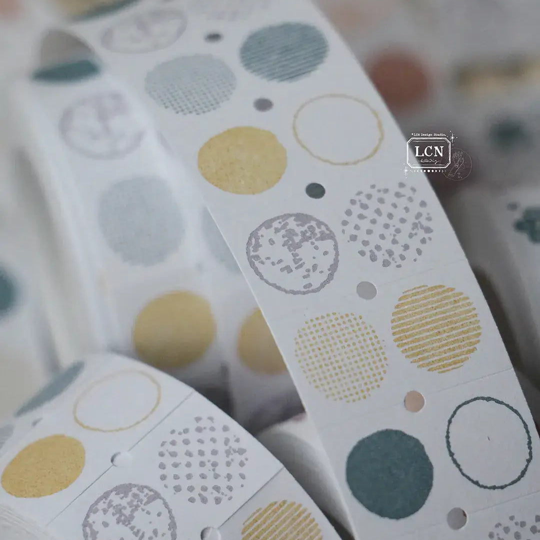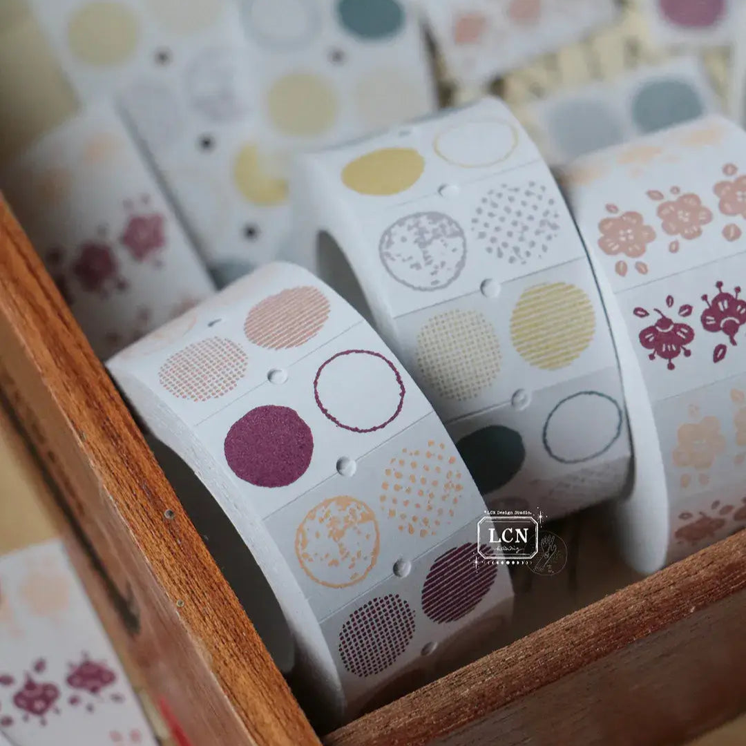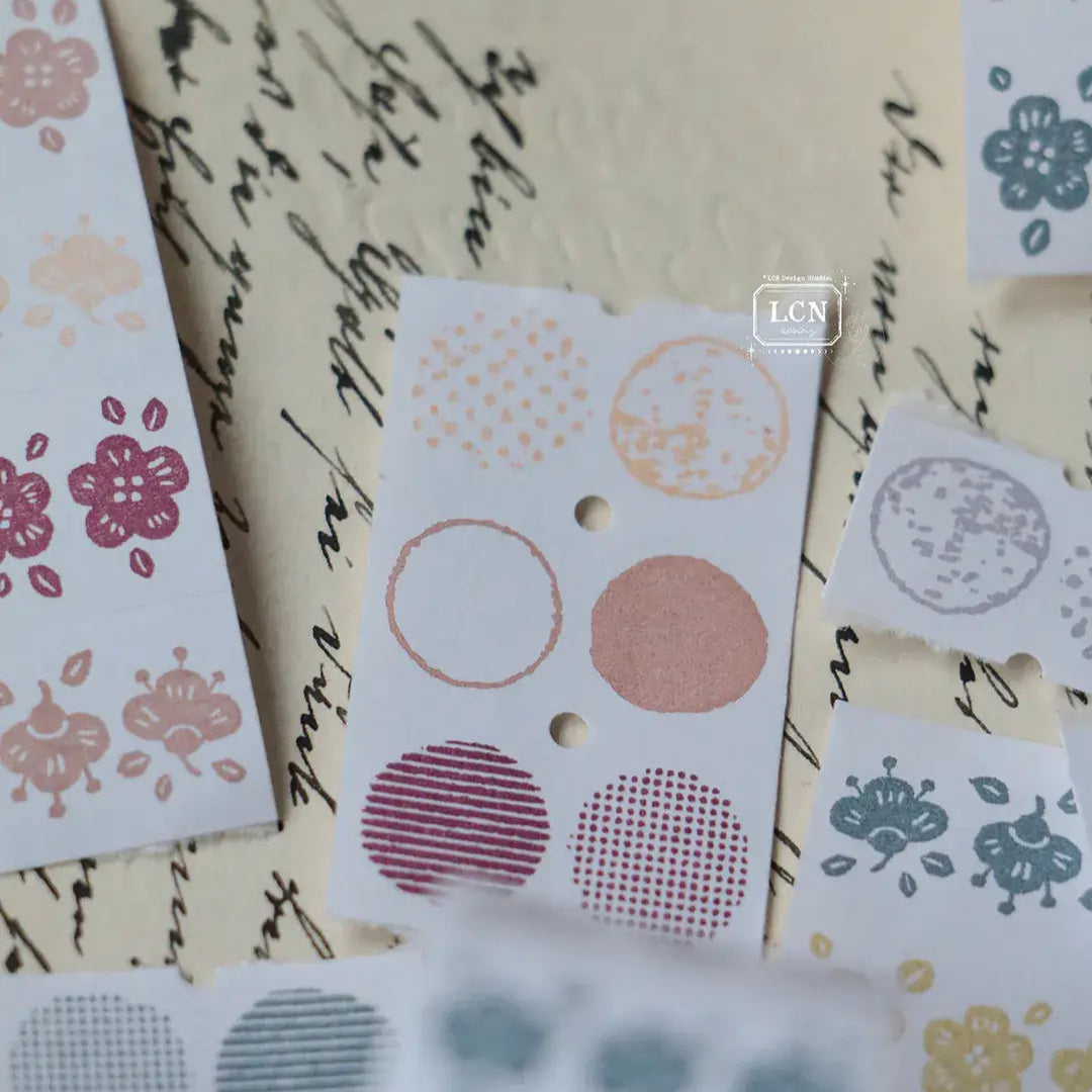 Whether used individually or arranged in sequences, these stickers add rhythm and visual interest to journals, collage pages, gift wrapping, and packaging. Easy to layer with washi tapes, stamps, or paper ephemera, they bring a gentle graphic presence without overpowering the page.