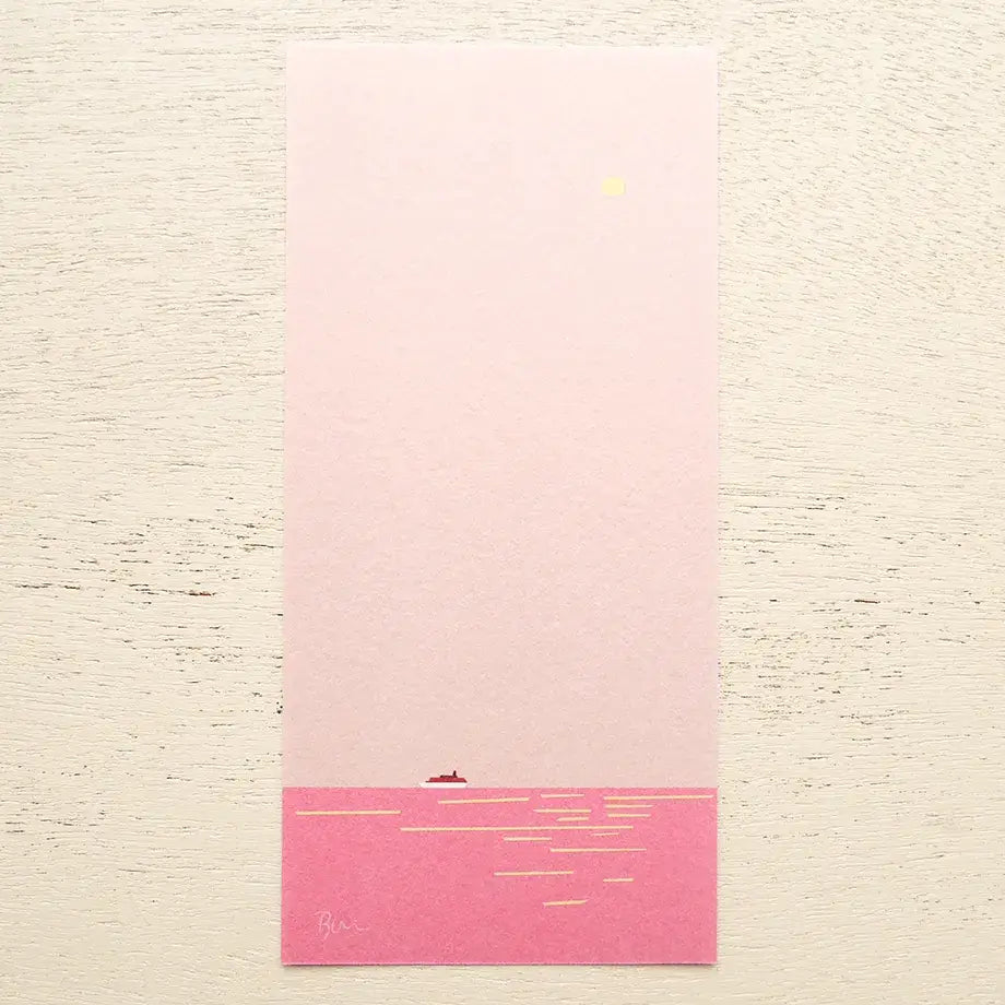 The set includes four different designs, allowing you to choose a page that suits your mood or recipient. Printed on textured Mino washi paper, each sheet offers a uniquely pleasant writing experience and showcases the subtle charm of traditional Japanese paper.
