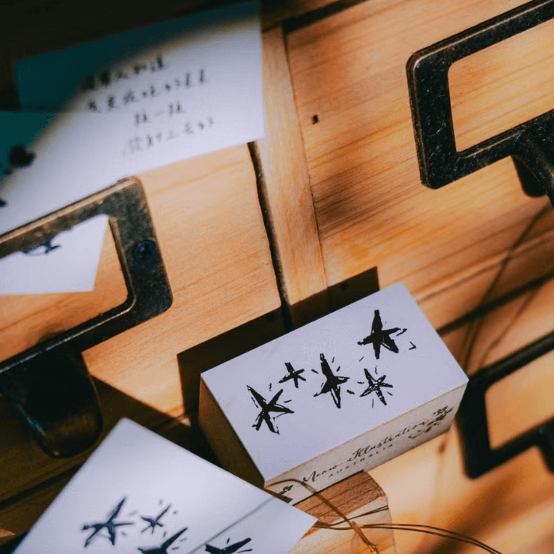 Inspired by Meow Illustration’s dreamy “Starry Night” series, this collection features six rubber stamps of a playful cat beneath a starlit sky. From soft paw prints to yarns and tiny blossoms, each design captures the gentle rhythm of nighttime stories and adds a touch of warmth to your journal pages, letters, or packaging.