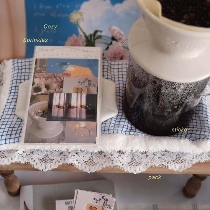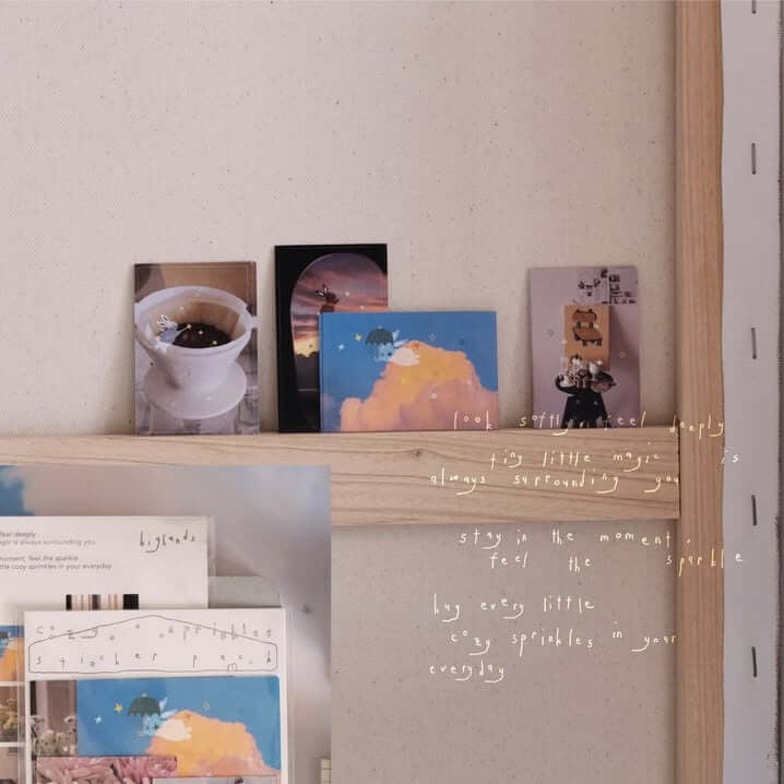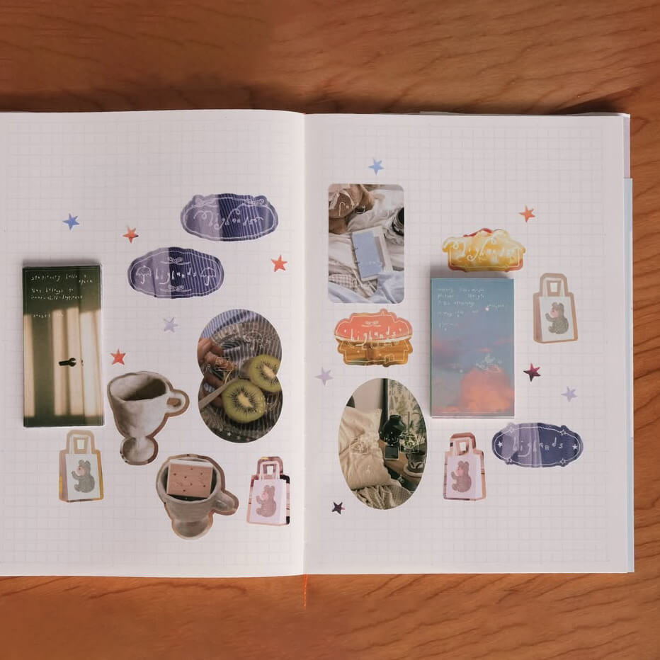 This sticker pack byย bighandsย is made to sprinkle warmth into everyday moments. Soft photographs, gentle illustrations, and tiny star-like details come together like fragments of wandering thoughts. Each sticker feels like a pause. A ribbon tying a memory. An umbrella appearing just when you need it.