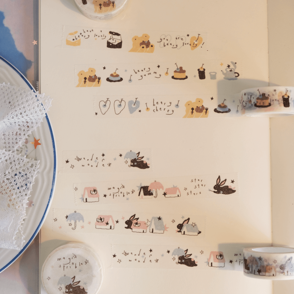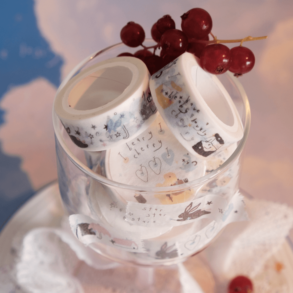 Designed by Malaysian artist bighands, this washi tape series captures soft, wandering moments such as tiny stars, quiet thoughts, sweet bears, and little scenes that feel like they came from a daydream. Designs like Beary Cherry and Magic Sprinkles add a playful warmth that feels both nostalgic and comforting.