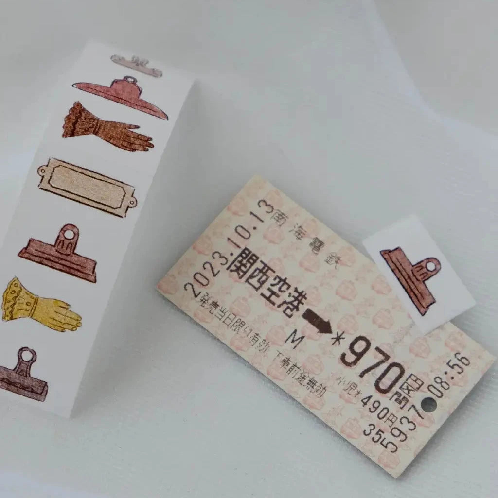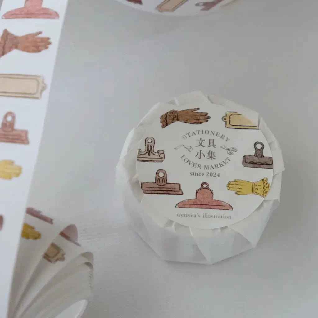 This mini sticker roll the charm of analogue days, featuring illustrations of seven different vintage-inspired clips, hand clips, and brass tag index boards. A charming tribute to the way we gather loose papers, photos, tickets, and tiny memories scattered across our journaling desks. Perfect as a delightful addition to any labelling enthusiast’s toolkit.