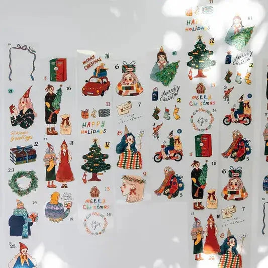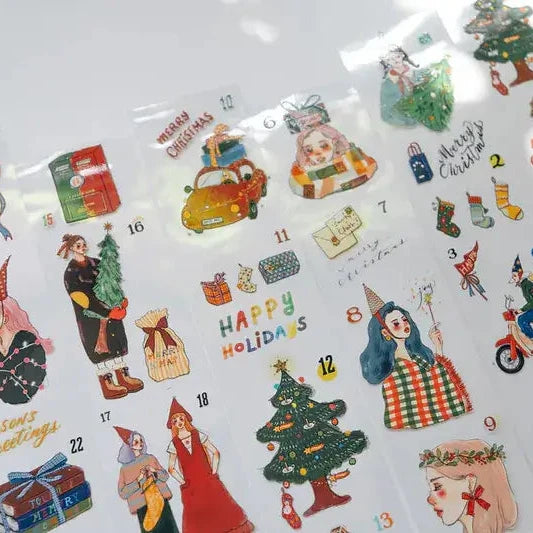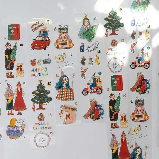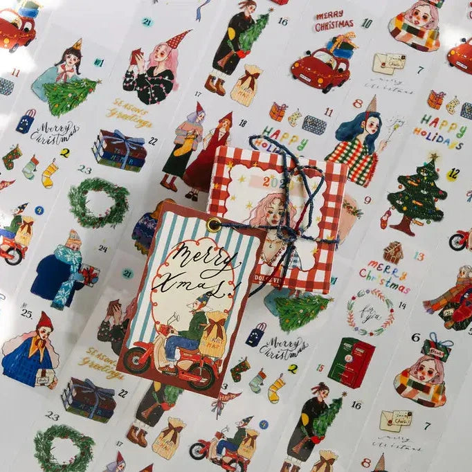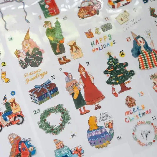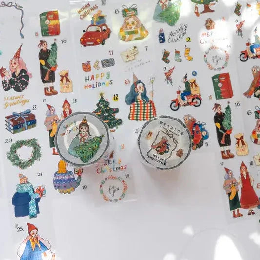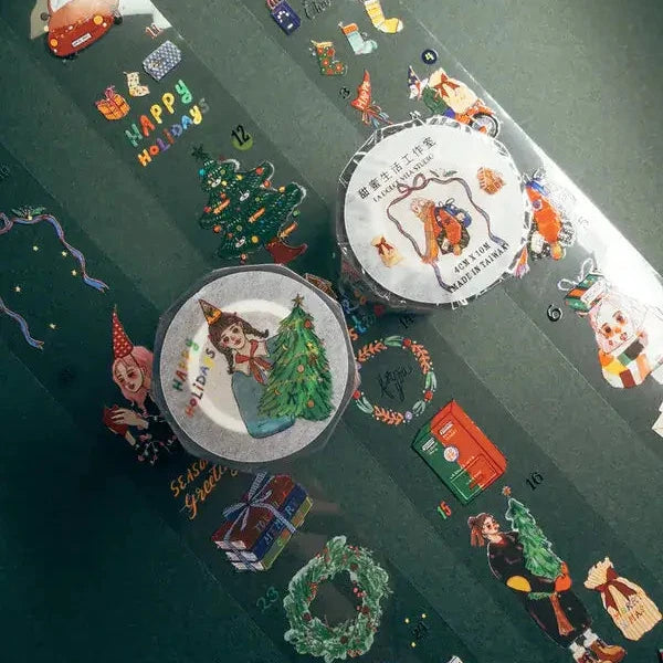 This PET tape features a collection of festive illustrations by La Dolce Vita, each one telling a small story of winter, celebration, and togetherness. From cozy outfits and wreaths to gifts and quiet holiday scenes, every detail feels like a page from a seasonal storybook.