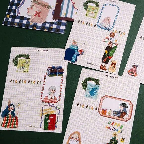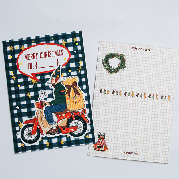 This postcard celebrates the magic of the Christmas season, filled with festive cheer and a touch of nostalgia. Perfect for sending warm wishes, decorating your journal, or adding a cozy holiday mood to your gift wrapping.