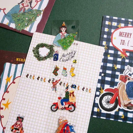 This postcard celebrates the magic of the Christmas season, filled with festive cheer and a touch of nostalgia. Perfect for sending warm wishes, decorating your journal, or adding a cozy holiday mood to your gift wrapping.