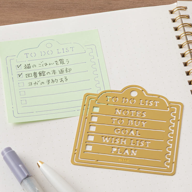 Bring order and charm to your pages with this brass template by Midori. With a quick trace of your pen, you can create neat headings, tidy to-do lists, and simple motifs that make your planner or notebook both practical and visually pleasing.