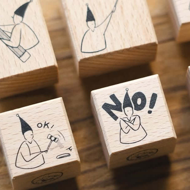 Whether they are shouting through a megaphone, raising a sign for attention, or proudly stamping “OK”, each design captures familiar moments from work, study, and daily life.