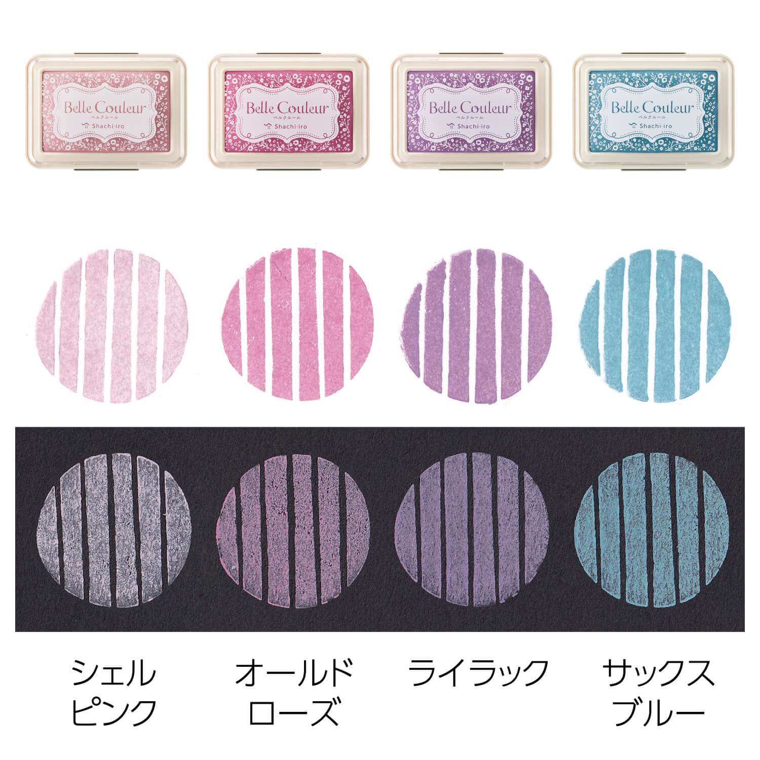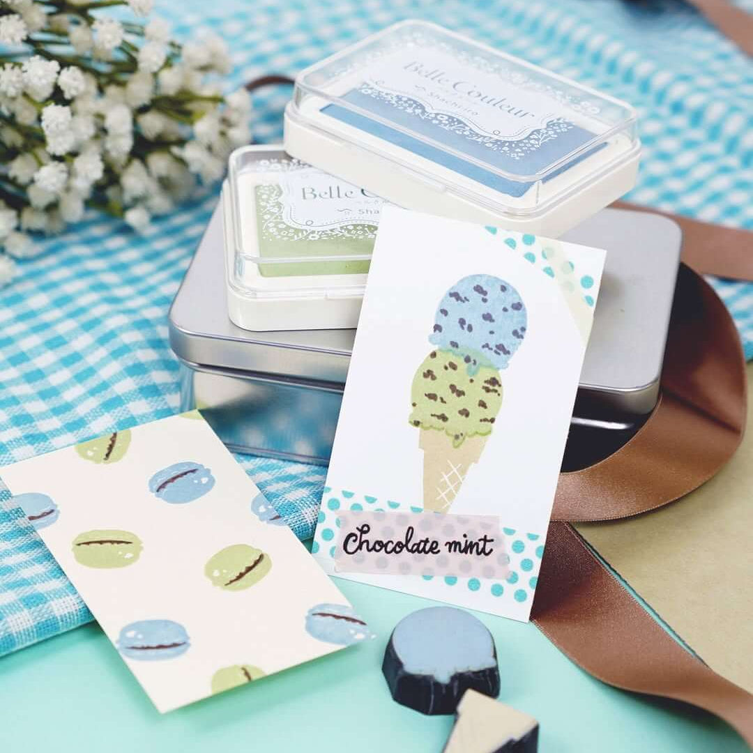 Belle Couleur, meaning “beautiful colour” in French, is designed to make your creations stand out on both light and dark papers. With Shachihata’s nano-technology oil-based pigment ink, it delivers rich, vivid impressions and crisp details that remain clear even on darker backgrounds.