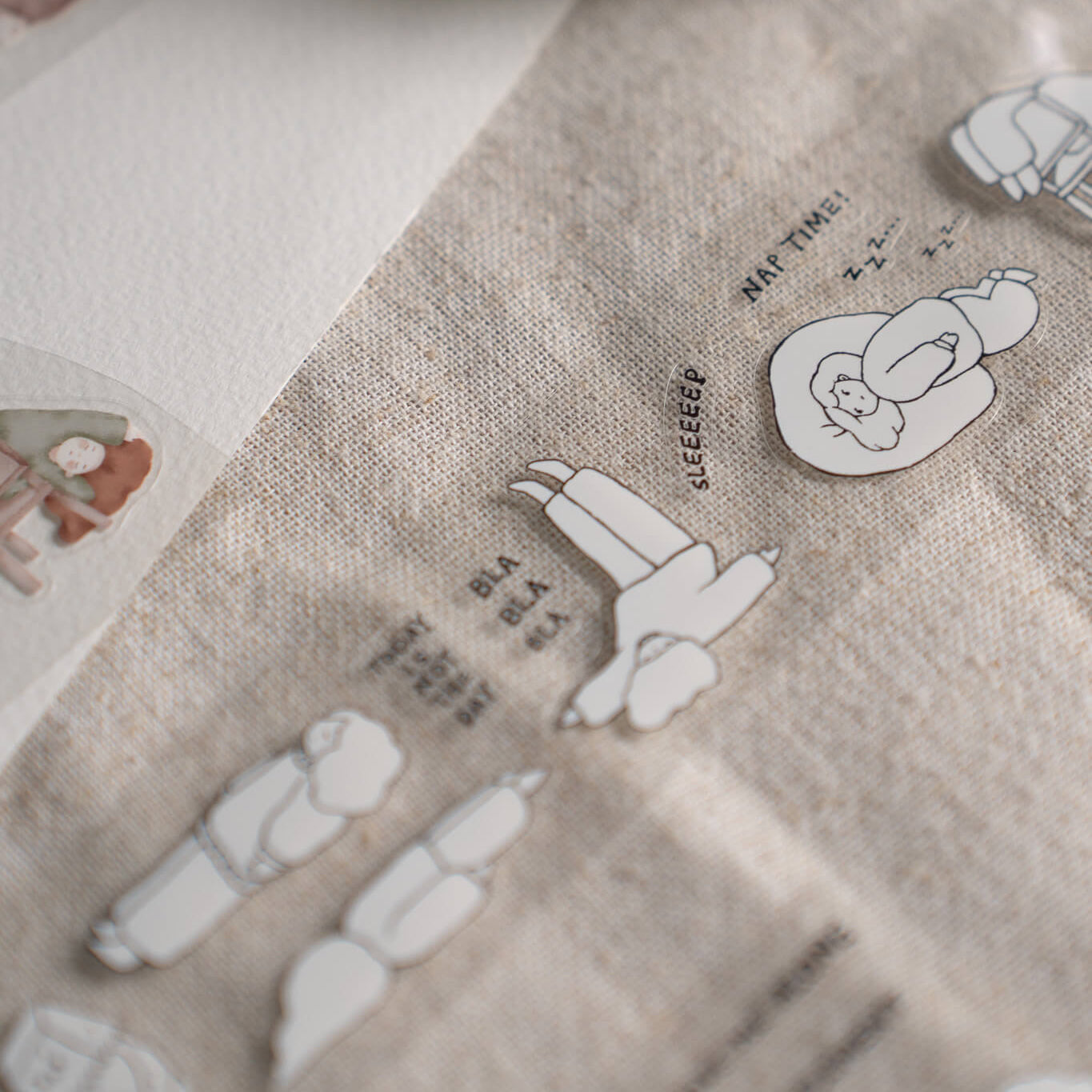 Printed on transparent PET, the illustrations layer beautifully over your notebook pages, photos, or paper textures, making it an easy piece to blend into vintage-style spreads. Thoughtfully crafted with a die-cut design, each piece can be easily peeled, cut, and arranged.