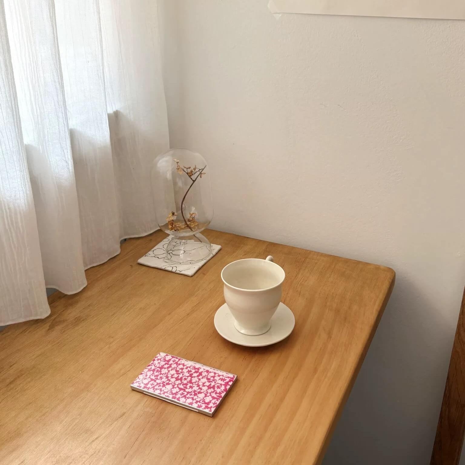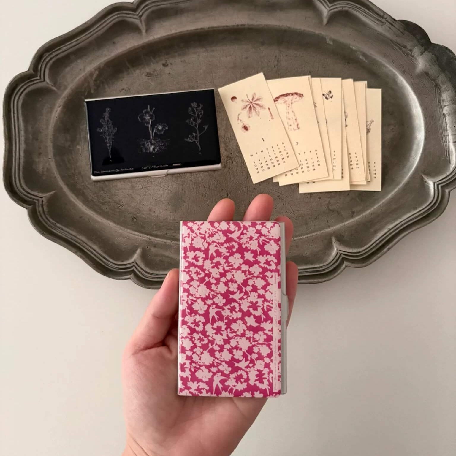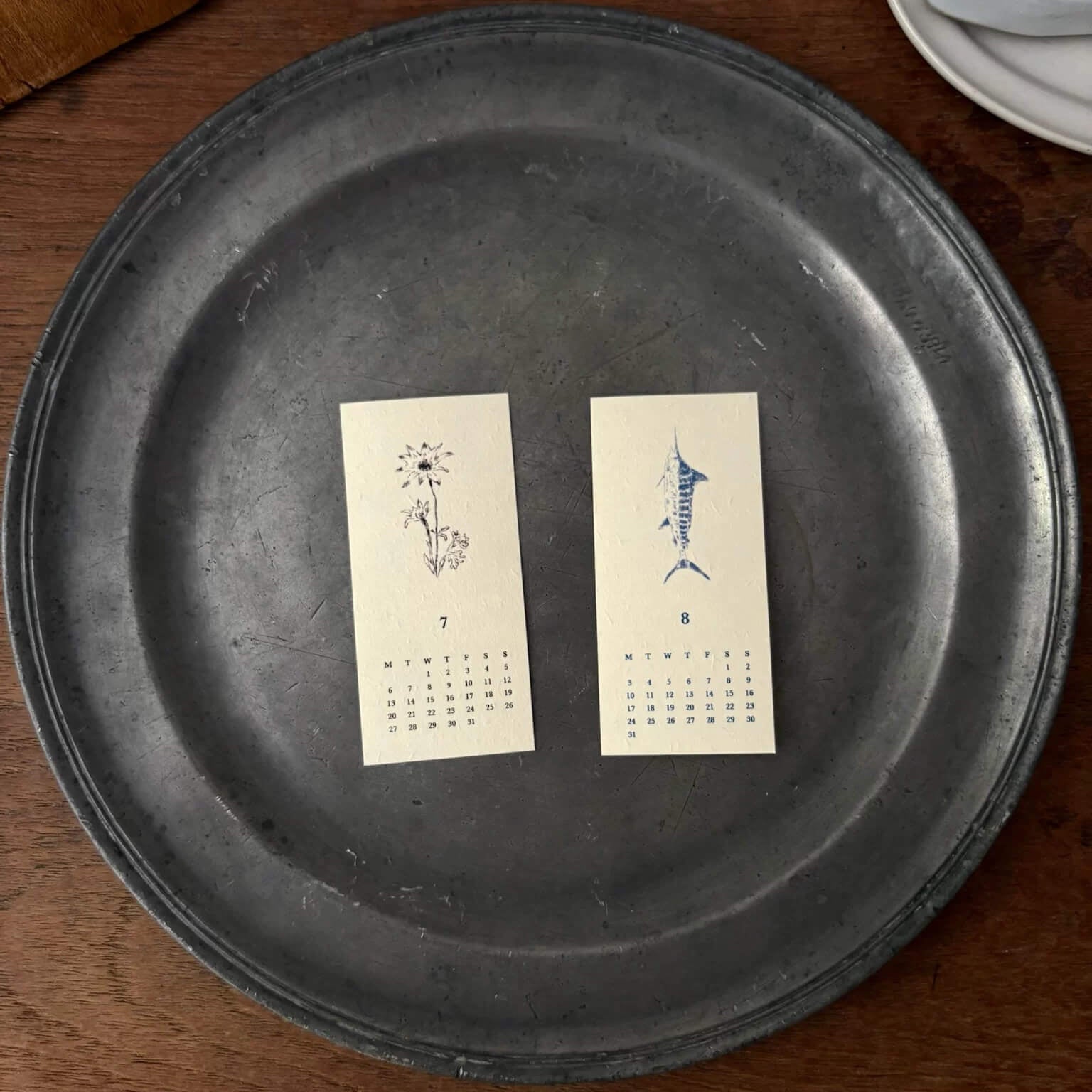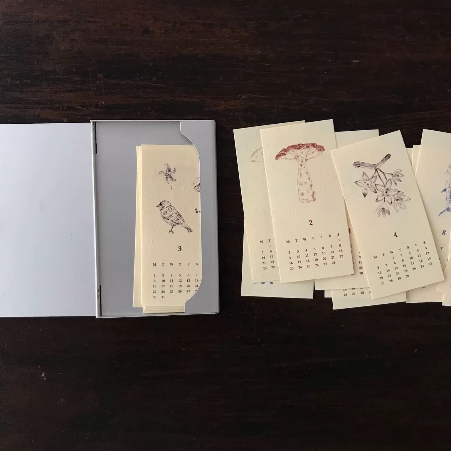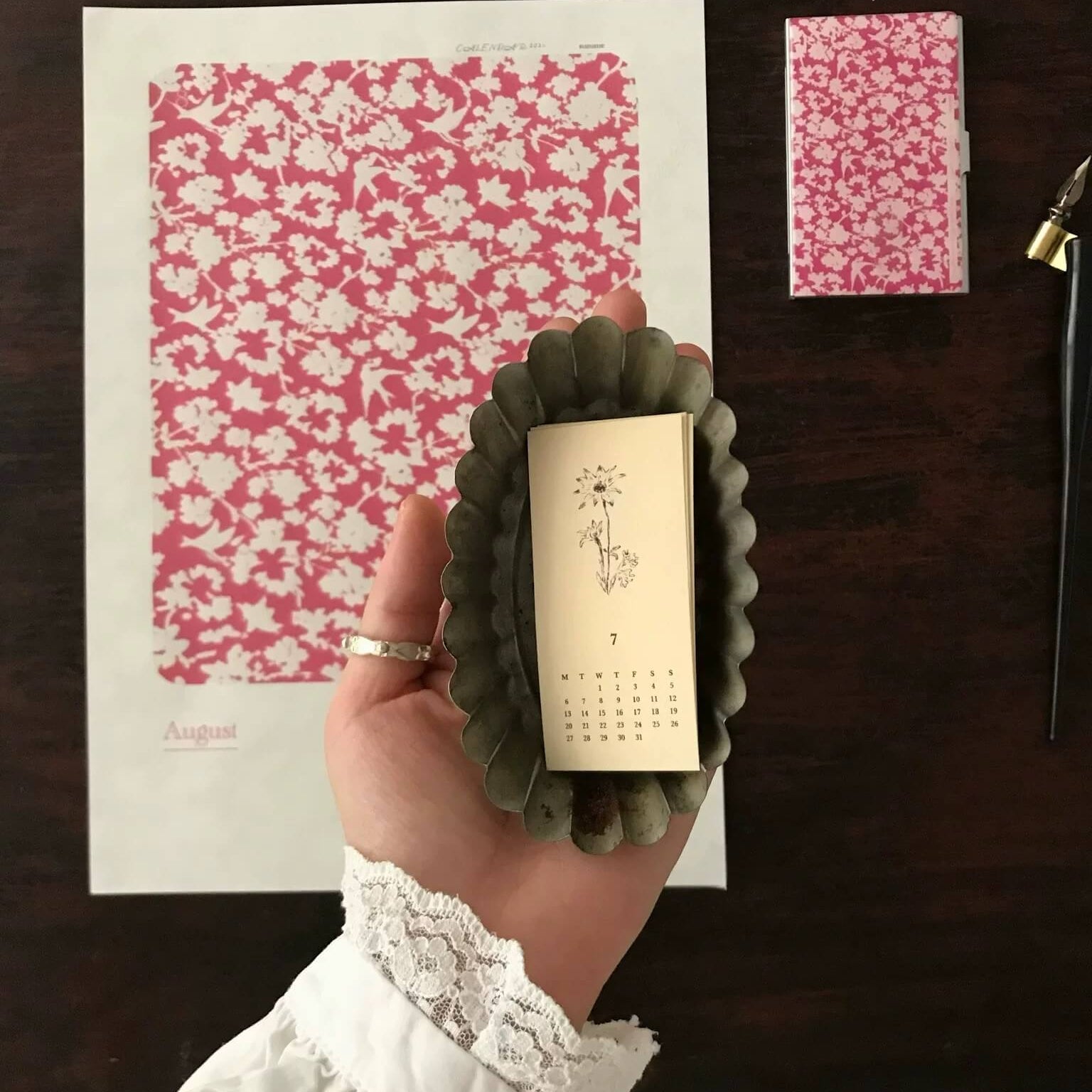 This 12-month mini calendar features delicate pencil-style illustrations in calming blue and green tones, paired with timeless typography. The vintage-inspired artwork and tea-coloured paper bring a gentle warmth, making each page feel like a small keepsake.