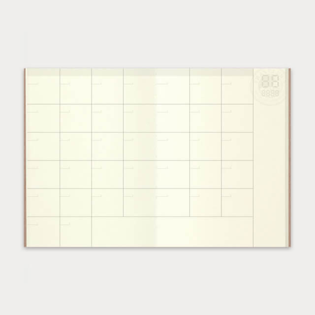 The Monthly Free (006) refill for TRAVELER’S notebook (Passport Size) features a simple monthly block layout that lets you view each month at a glance, perfect for planning schedules, noting anniversaries, or marking birthdays.