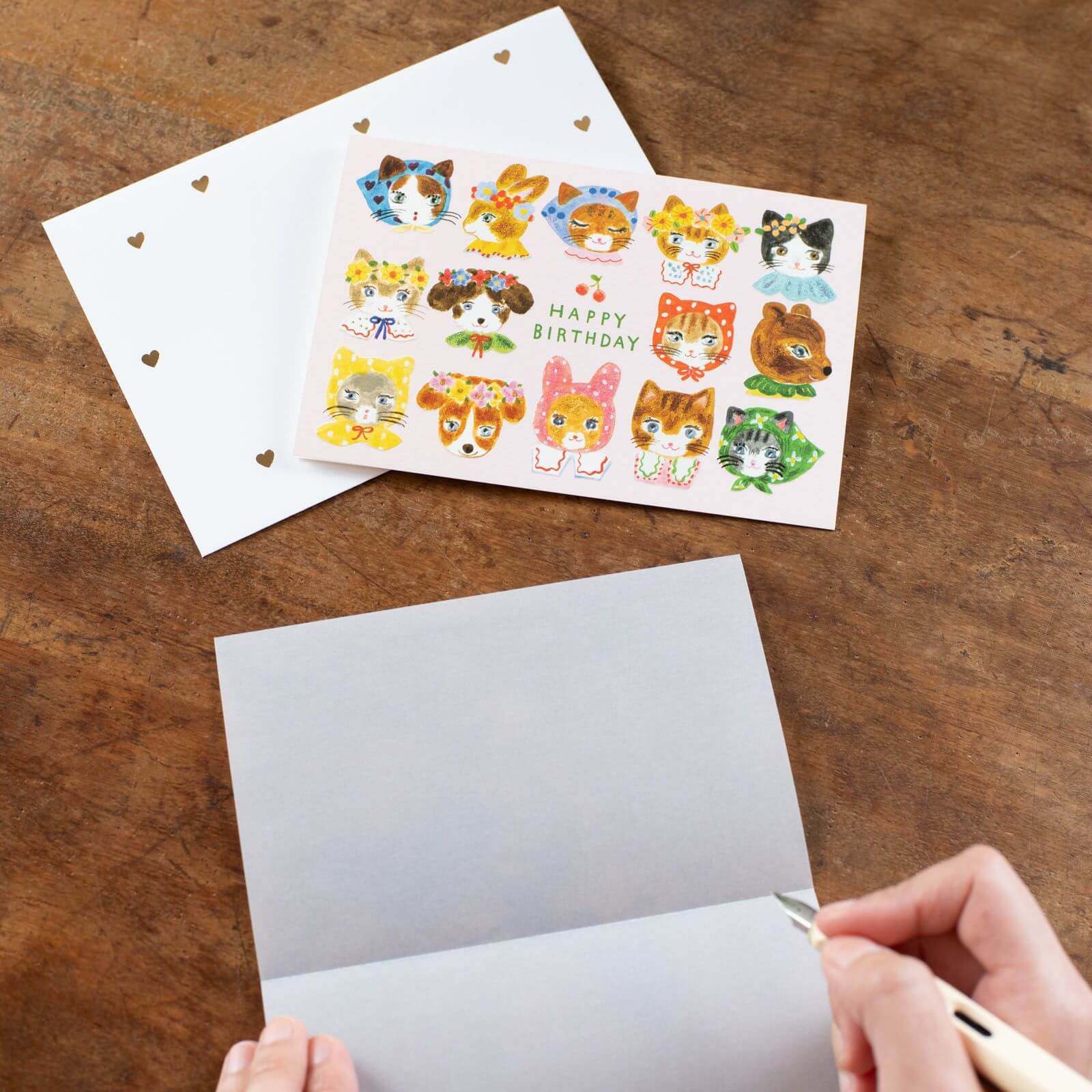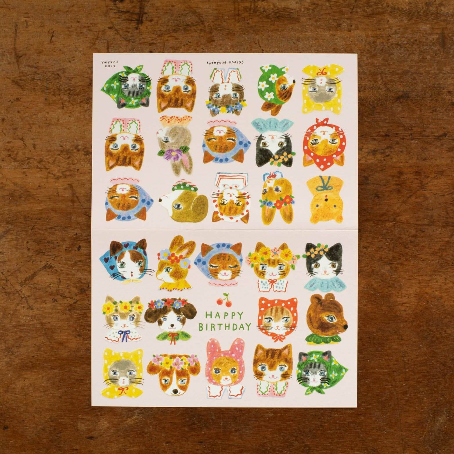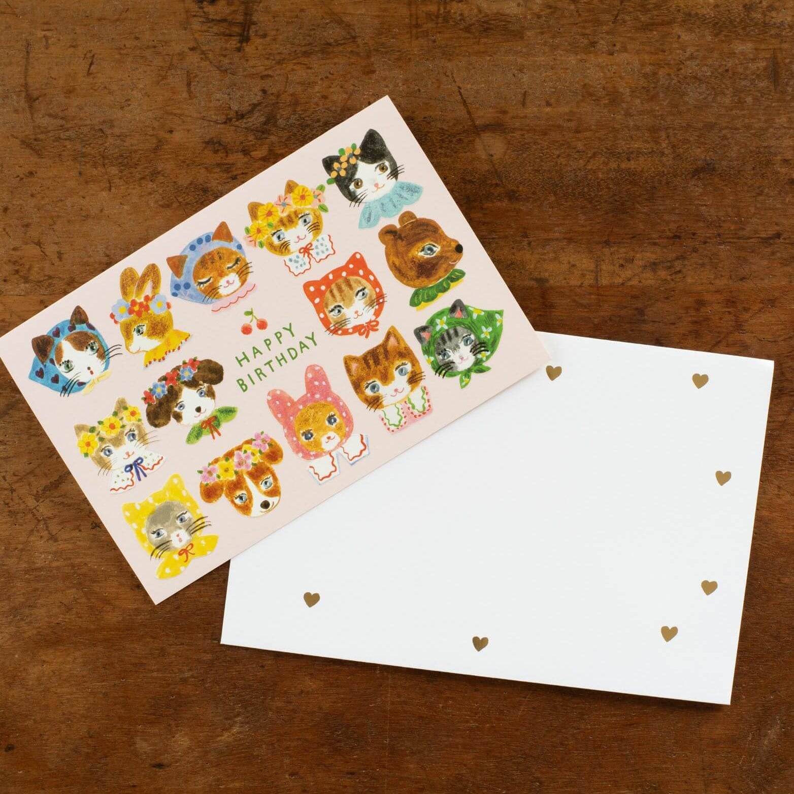 This delicate and serene birthday card showcases charming, fashionably dressed animals sporting big smiling expressions. The card is finished with elegant embossed detailing and comes paired with a shimmering silver-foil stamped envelope.