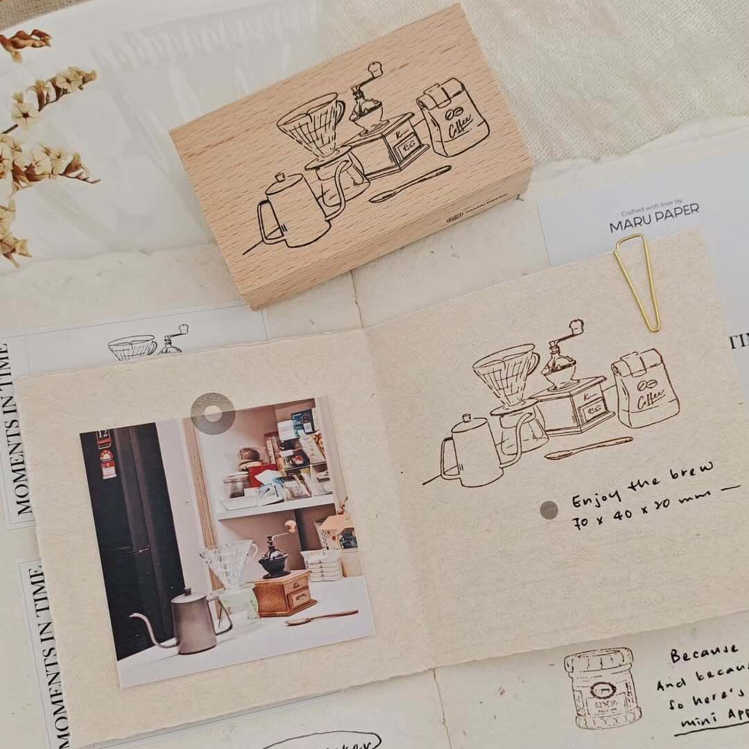 Inspired by the quiet rituals that shape our everyday lives, each rubber stamp design is drawn from her daily routines. It is a freshly brewed cup of coffee, a lovingly prepared meal, and the small, familiar moments that bring comfort and joy.