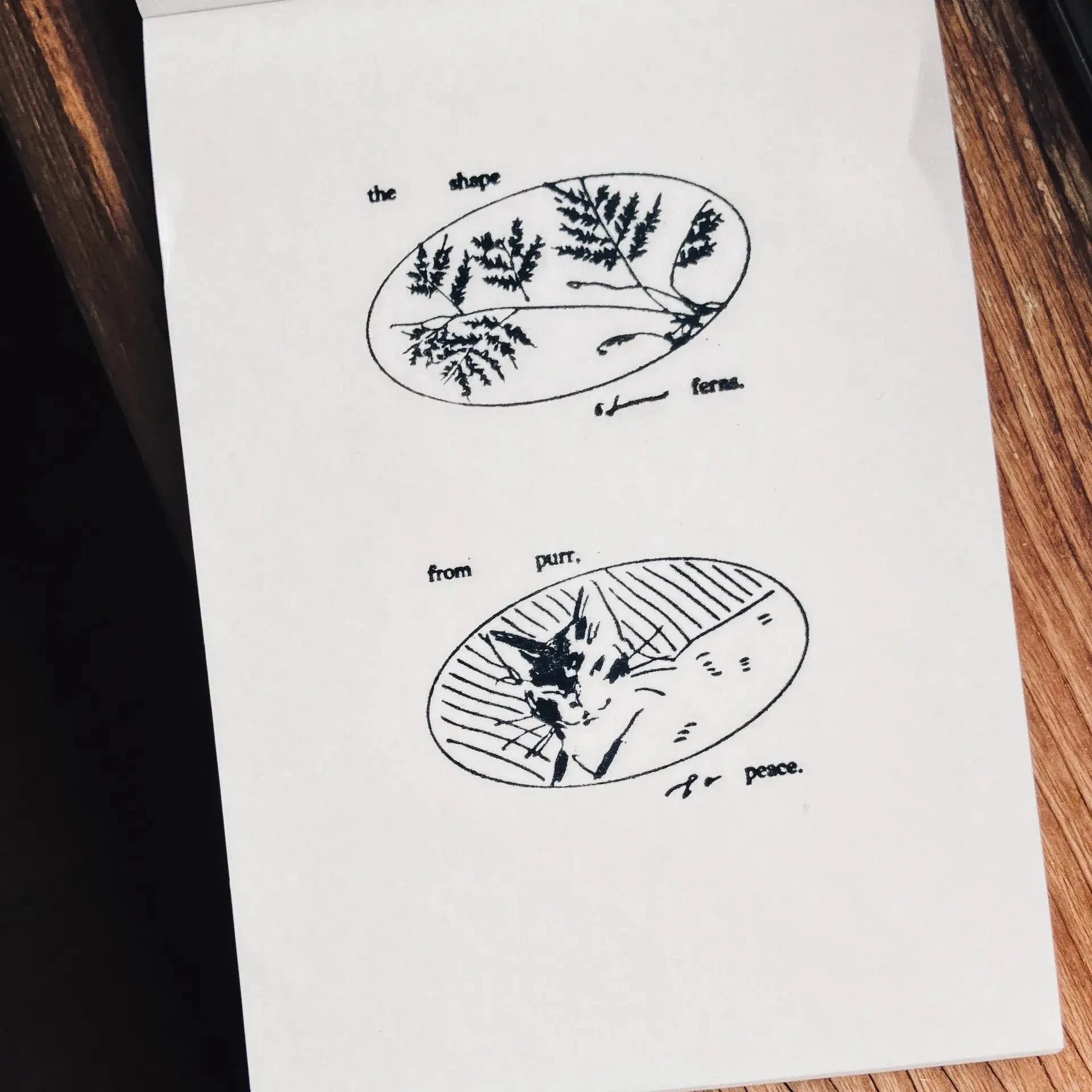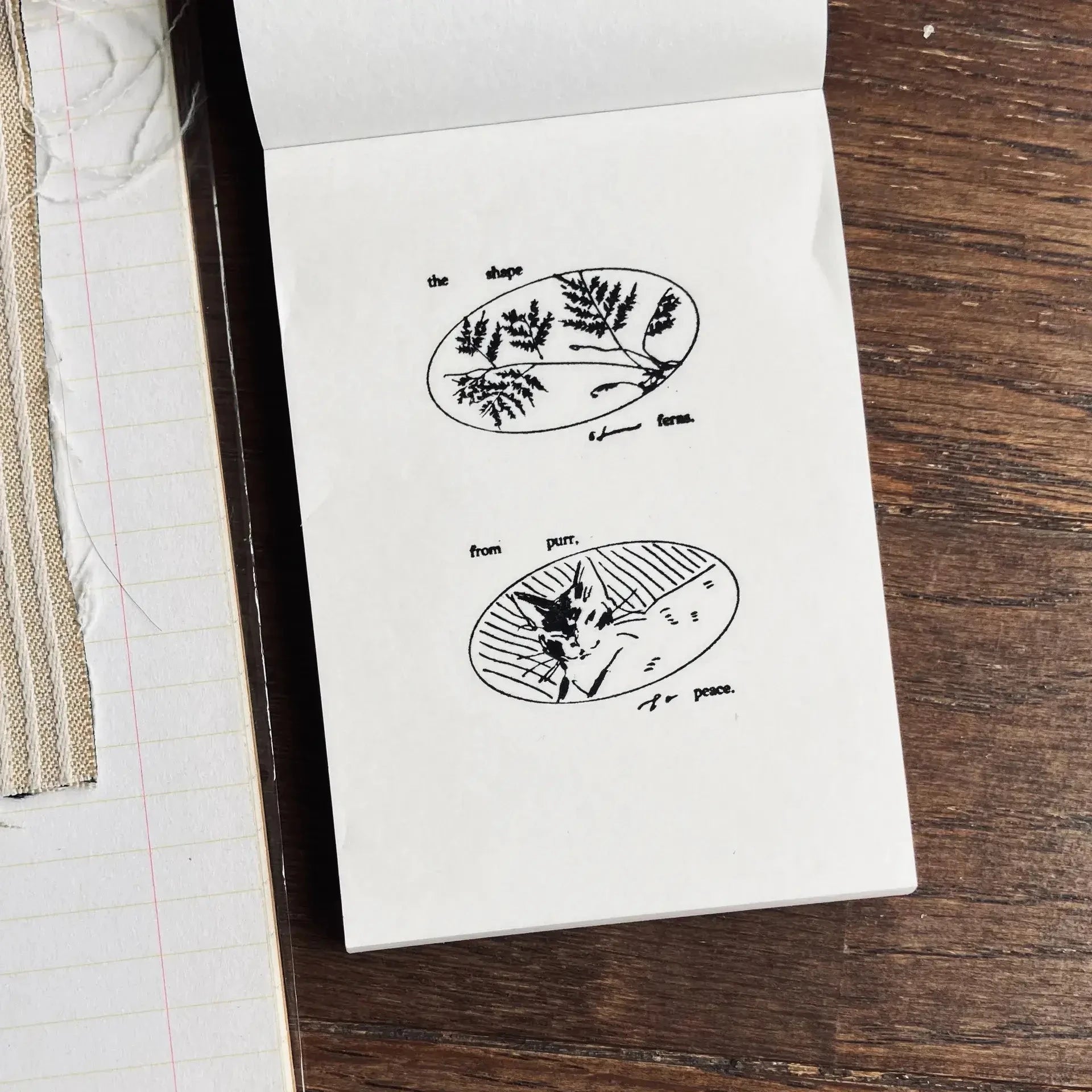 Delicate whiskers, soft paws, and the gentle curve of fern leaves. The sketches are adapted from My Favorite Things PET Tape, transforming its illustrated scenes into finely detailed stamps that capture both the warmth and serenity of everyday life. This charming design by somesortof.fern brings a quiet, magical touch to your pages, perfect for creating focal points in journals, letters, or craft projects.