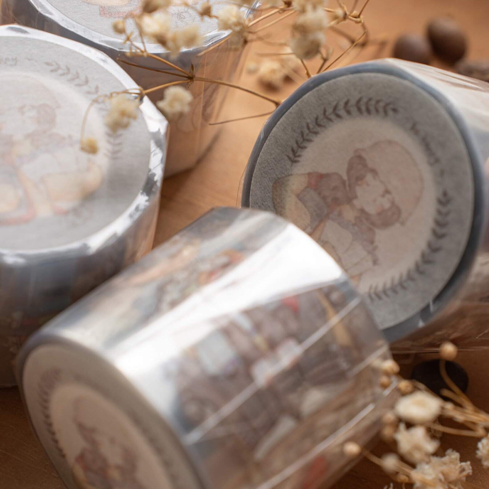 Lovely PET tape features original illustrations by shō Little Happiness. In a roll of tape, you'll discover signature girl character that embellished with whimsical details. Each design encapsulates gentle poses with a soft, contemplative expression, evokes a sense of calm and cozy scene.
