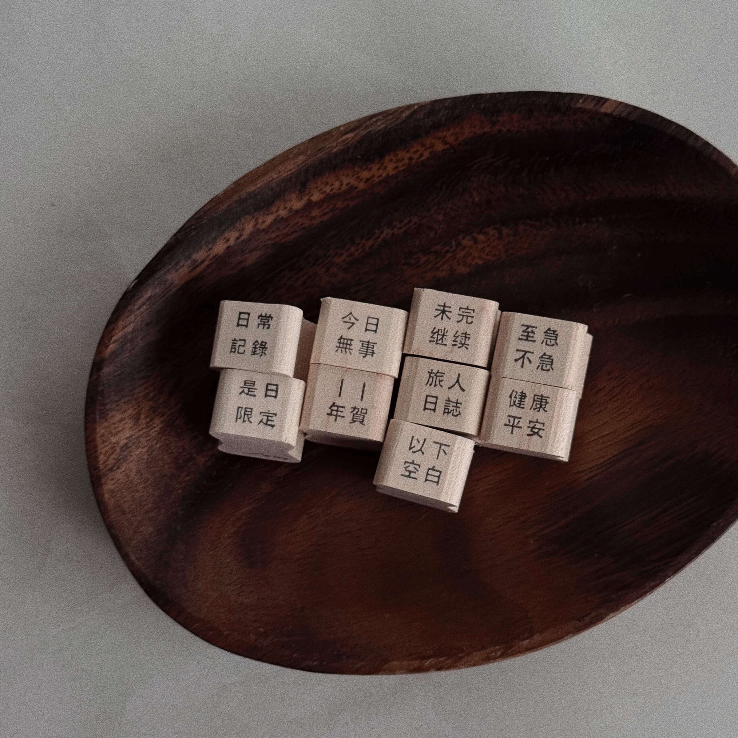 This series of wooden rubber stamps draws inspiration from traditional postal markings, precanceled stamps, and archival seals often found on letters, parcels, and everyday paperwork. Instead of dates or locations, each stamp features a short phrase, designed to function like a quiet mark of status, moment, or intention.