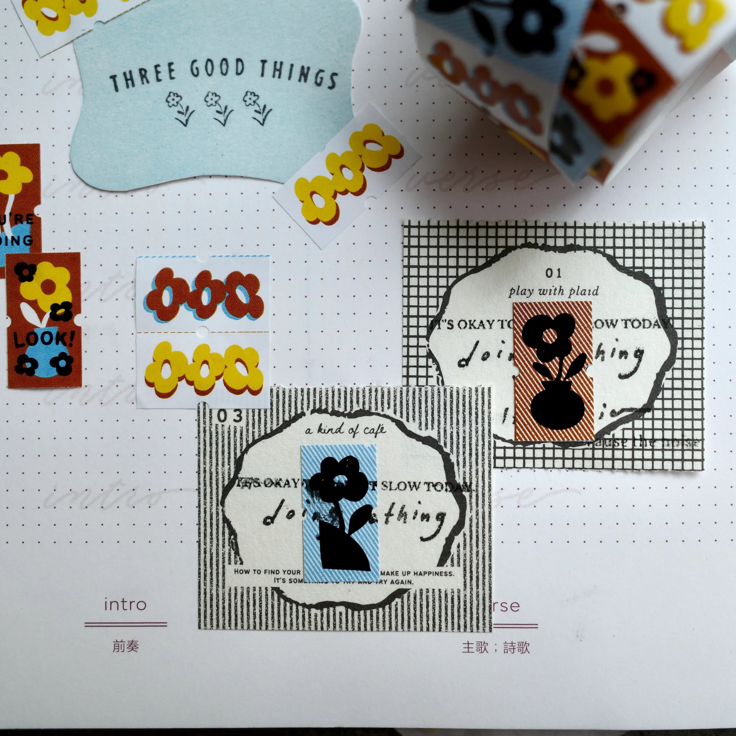 Each segment of this mini sticker roll is designed with a charming price-tag inspired shape, featuring cheerful floral illustrations in warm, playful colours. With pre-cut perforation lines, every piece is easy to tear, peel, and apply, just like a tiny label.