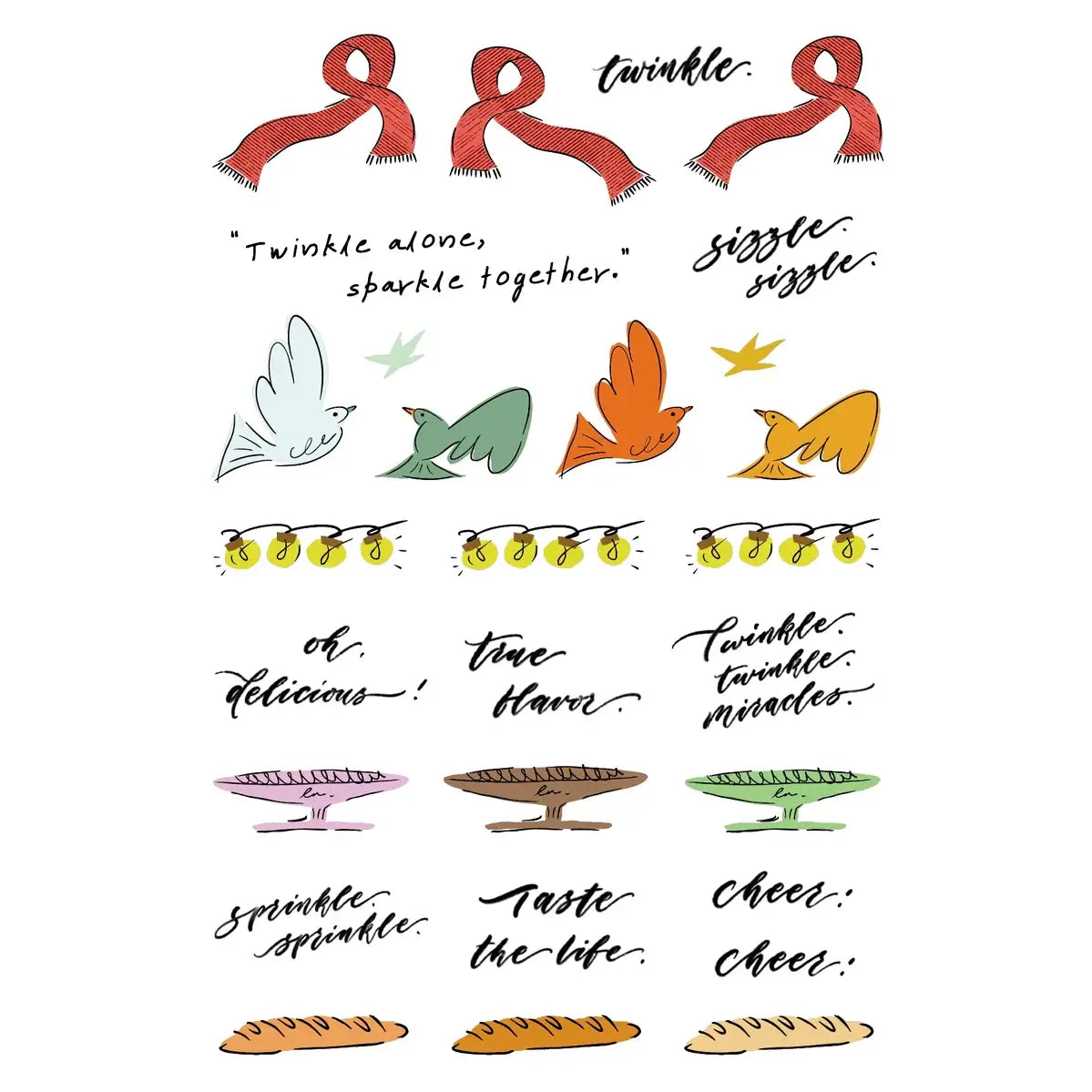 This sticker set includes three (3) beautifully designed sheets, each captures the gentle sparkle of Christmas, wrapping your holiday season in warmth and festive charm. From cozy winter motifs to cheerful seasonal accents, each piece thoughtfully illustrated to capture the magic of coming together during the holidays, making your pages feel extra joyful and bright.