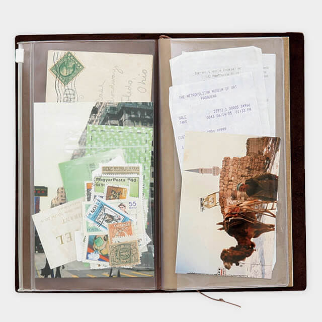 Made of transparent PVC, it allows you to easily see what’s inside, turning your TRAVELER’S notebook into a practical carry case as well as a notebook.