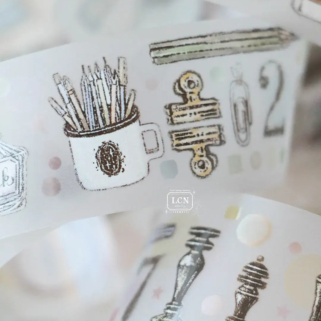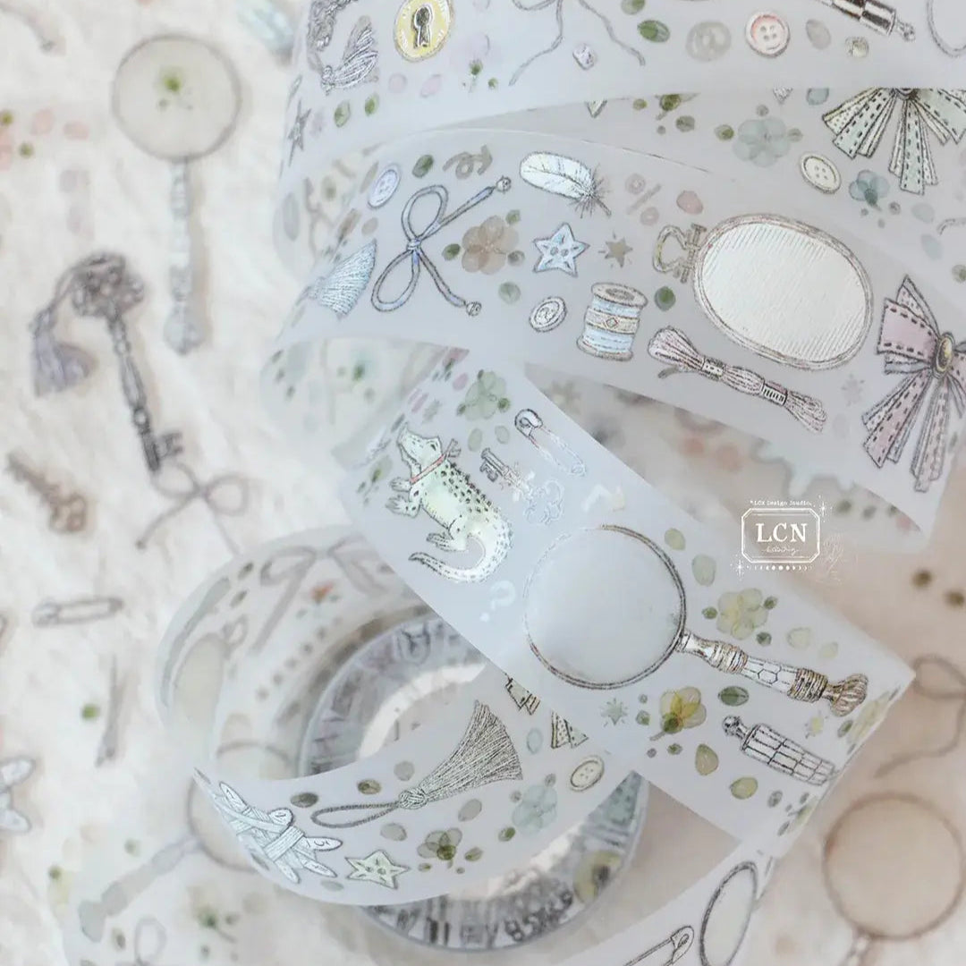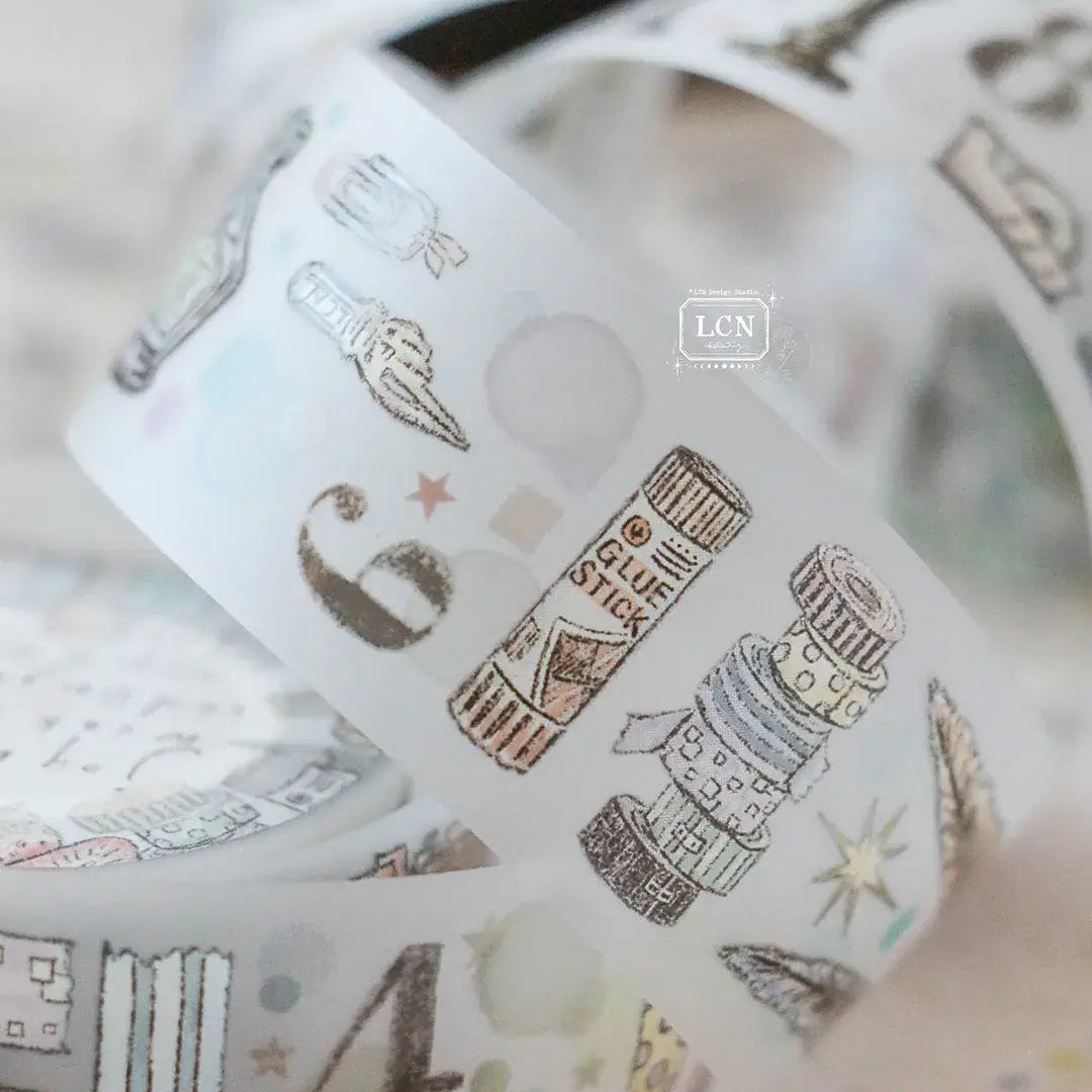 This charming PET tape celebrates the beauty of everyday details, including stationery tools, small objects, gentle symbols, and moments that quietly brighten the day. Each illustration is thoughtfully arranged, allowing every tiny element to stand on its own while still flowing harmoniously along the tape.