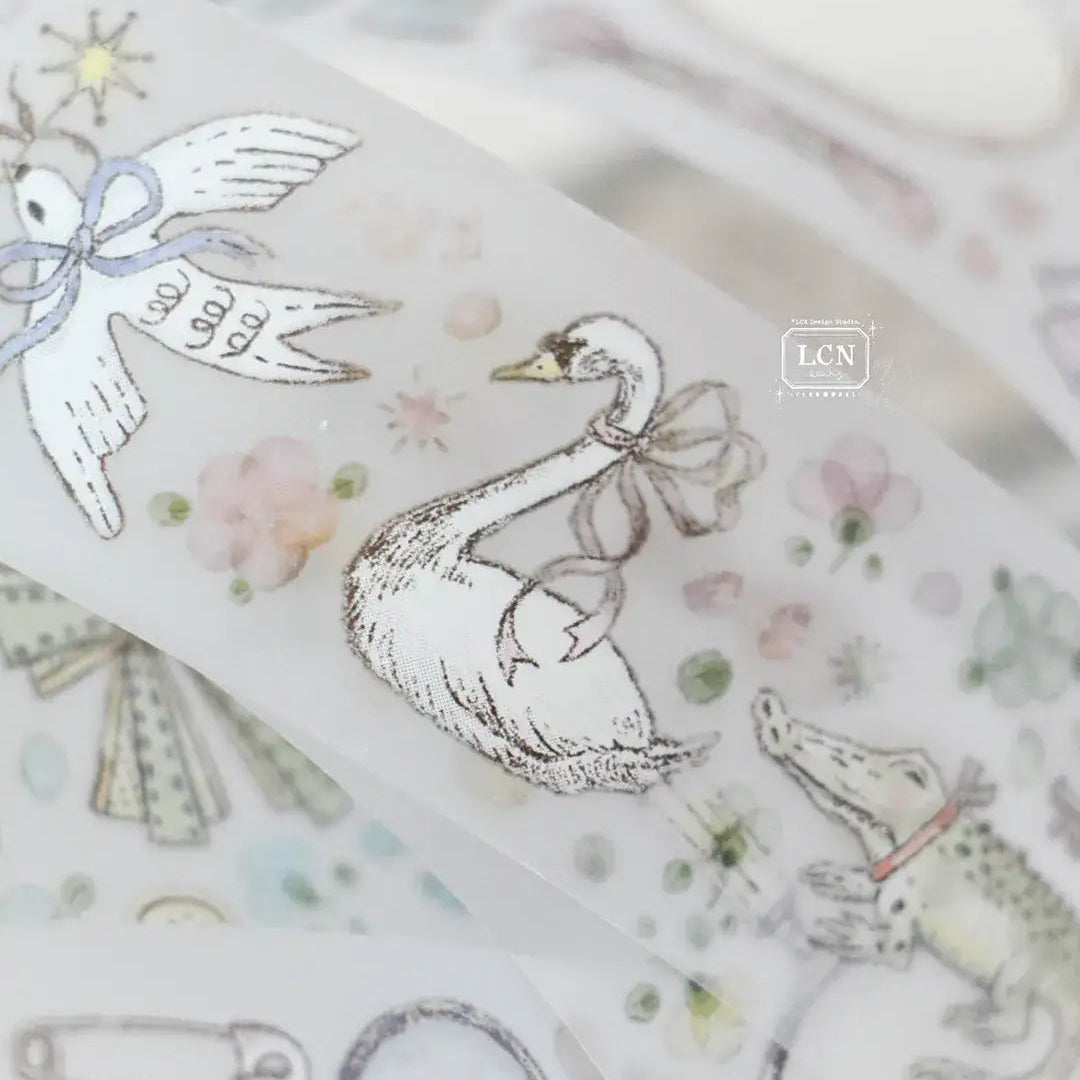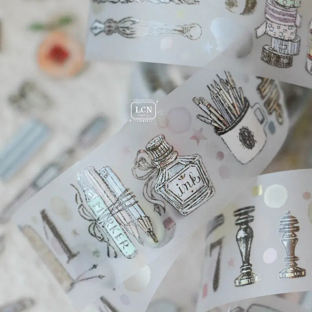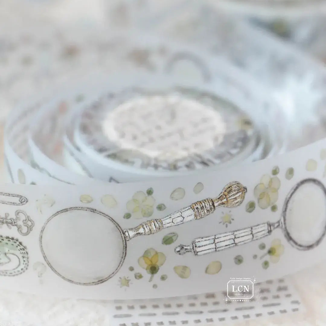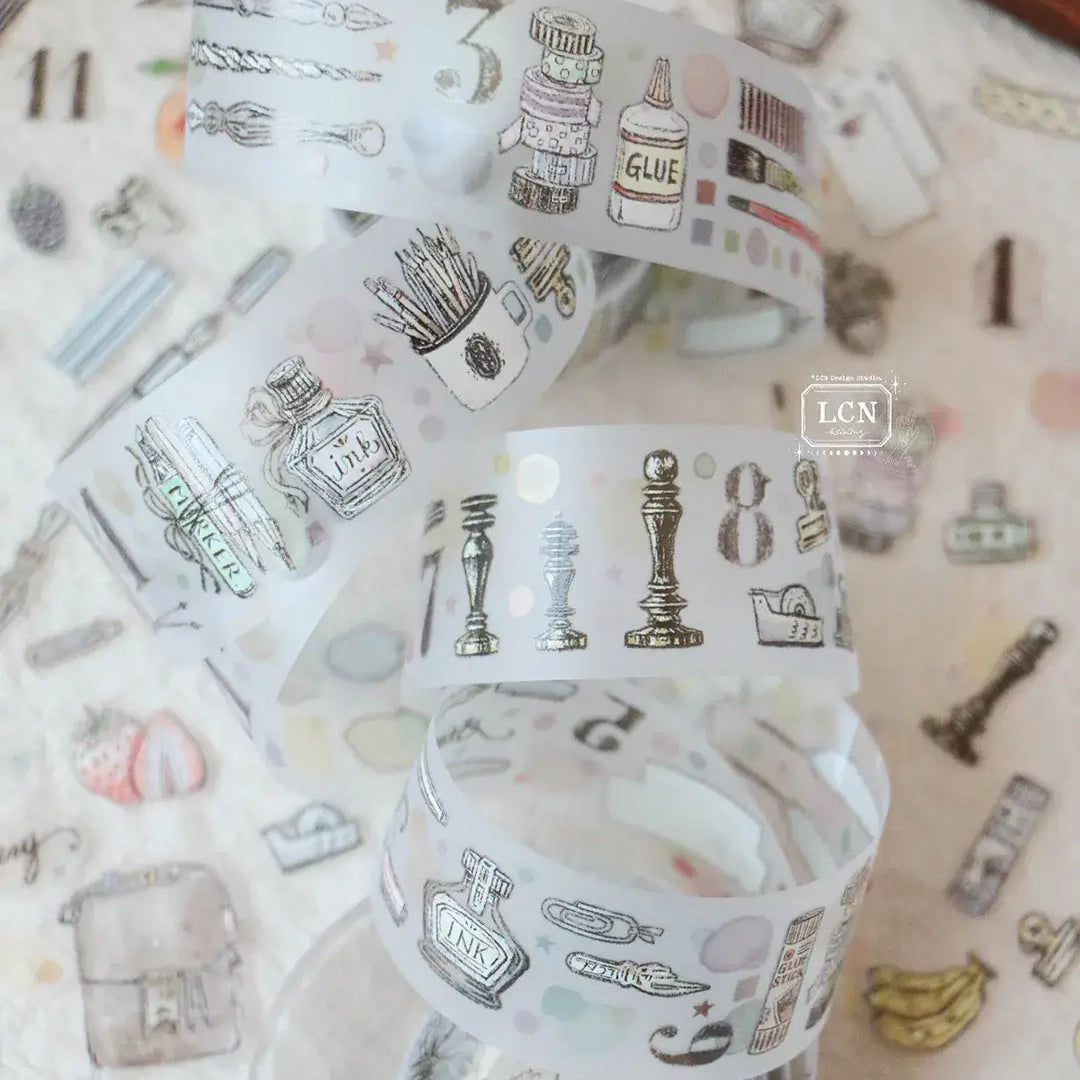 This charming PET tape celebrates the beauty of everyday details, including stationery tools, small objects, gentle symbols, and moments that quietly brighten the day. Each illustration is thoughtfully arranged, allowing every tiny element to stand on its own while still flowing harmoniously along the tape.