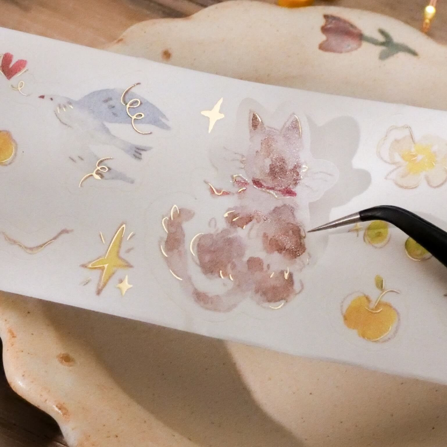 Meow Illustration Kiss-Cut Washi Tape - The Starry Night