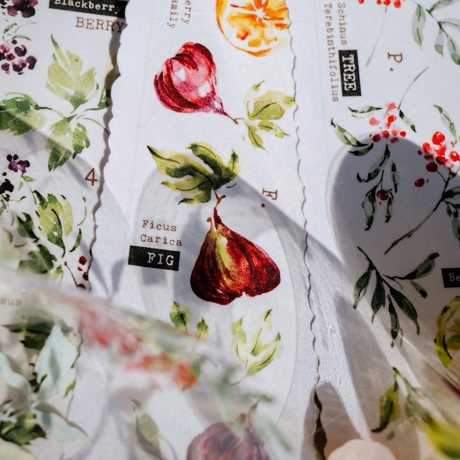 Inspired by the refreshing sweetness of fruits and botanicals, this tape captures the colours and scents of a lively garden, from citrus and pear to fig, berry, and tangerine. Each illustration is delicately painted with Meow Illustration’s signature watercolour touch, radiating warmth and cheer.