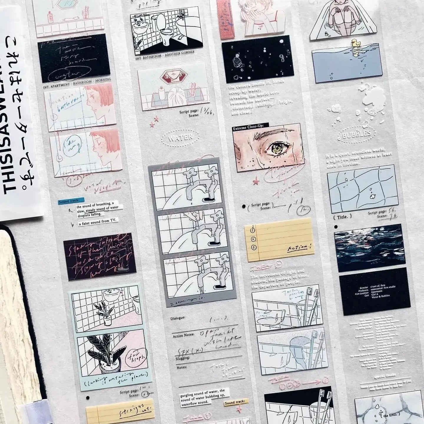 Before a film becomes a movie, its charm often lies in the raw sketches and handwritten notes, which are the earliest fragments of a story taking shape. This PET tape captures that same magic through film-style storyboards, underwater scenes, and small cinematic moments suspended in time.