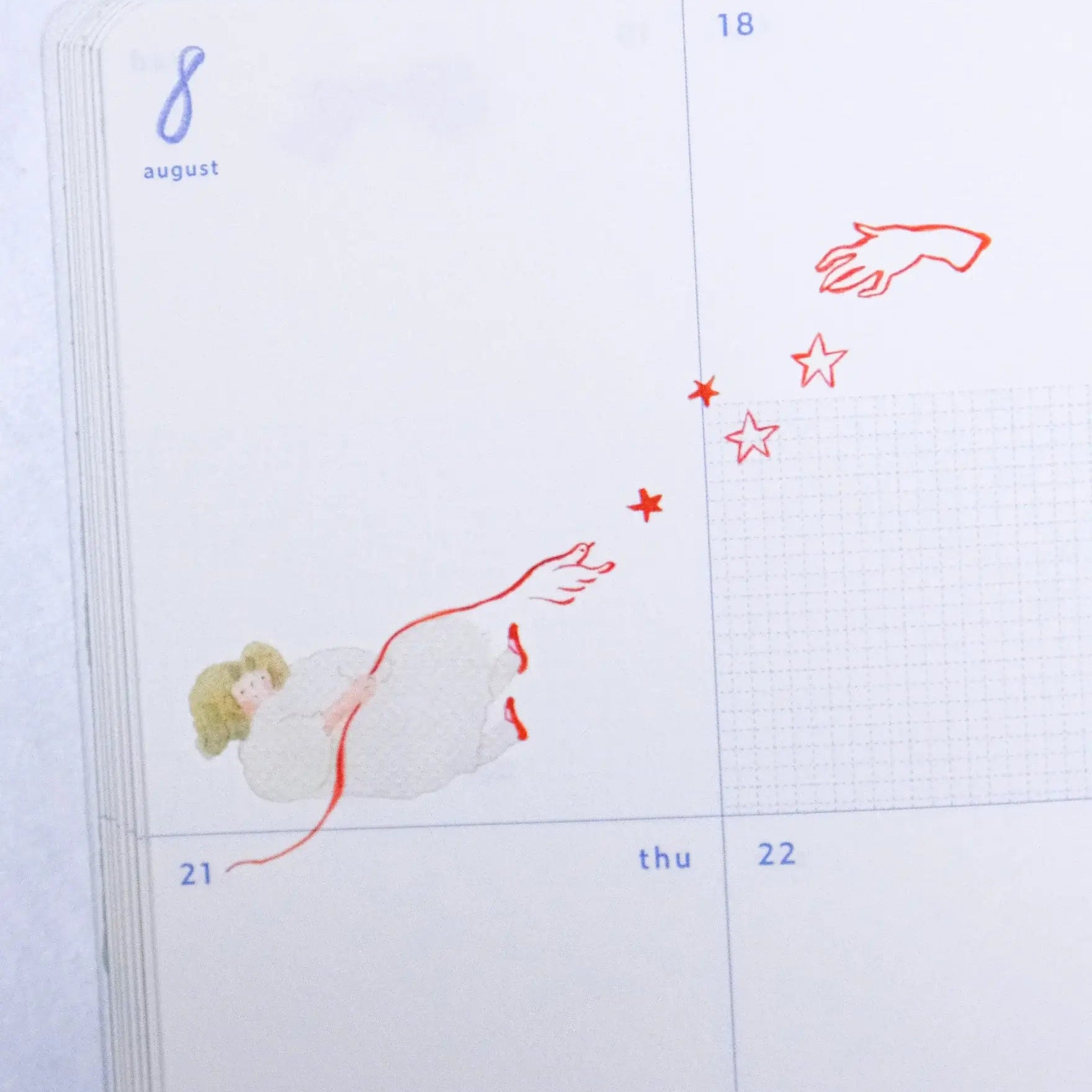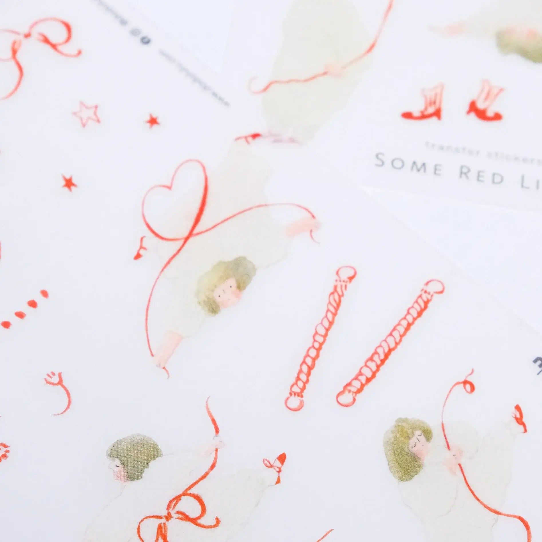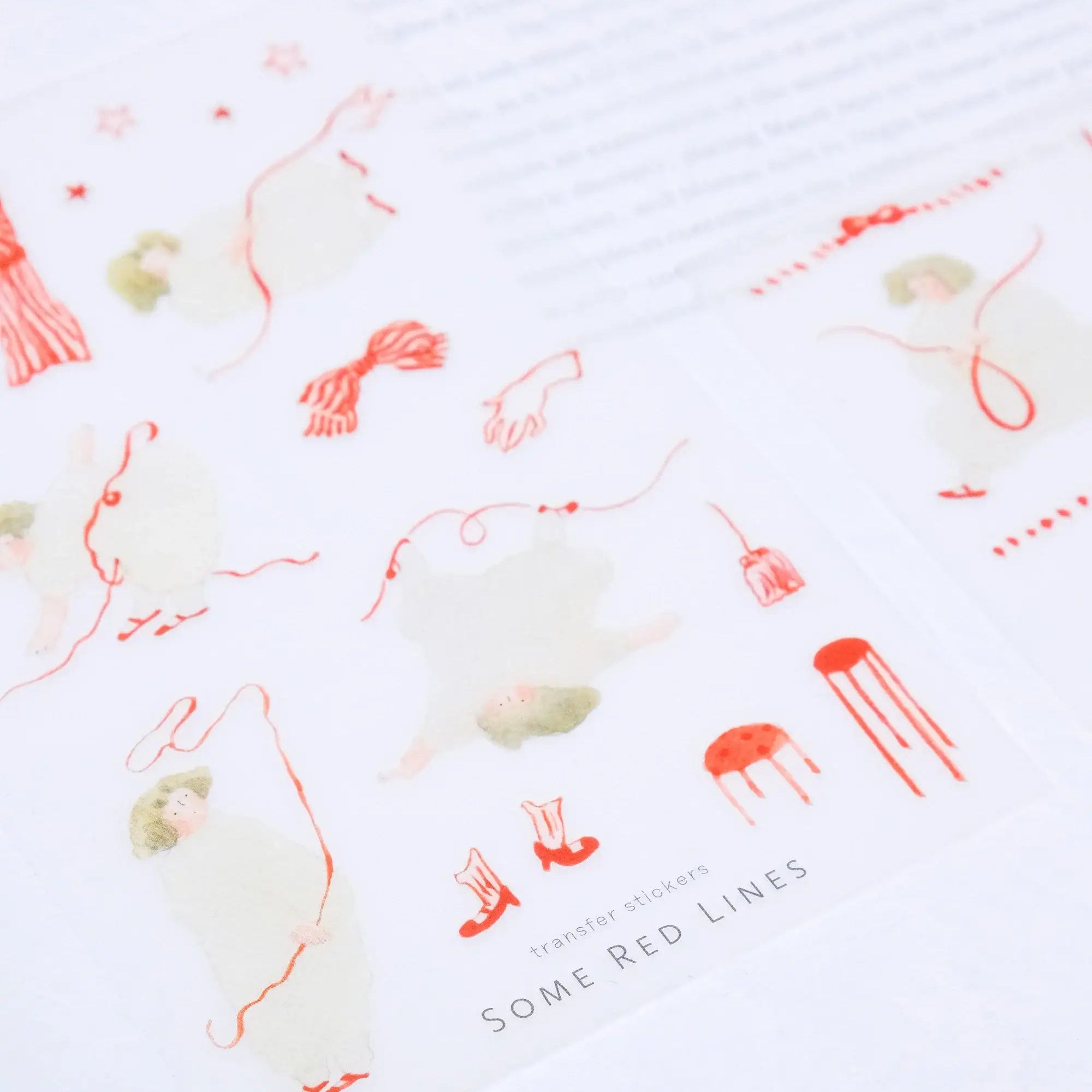 Bring a gentle charm to your pages with dodolulu’s rub-on transfer stickers, where art and softness drift together like a quiet dream. Each sheet features her signature watercolour illustrations, playful figures delicately drawn with flowing red lines, ribbons, and small gestures that express both warmth and whimsy.