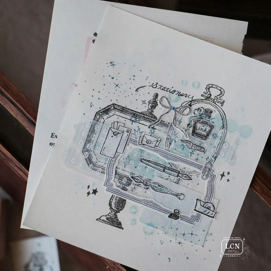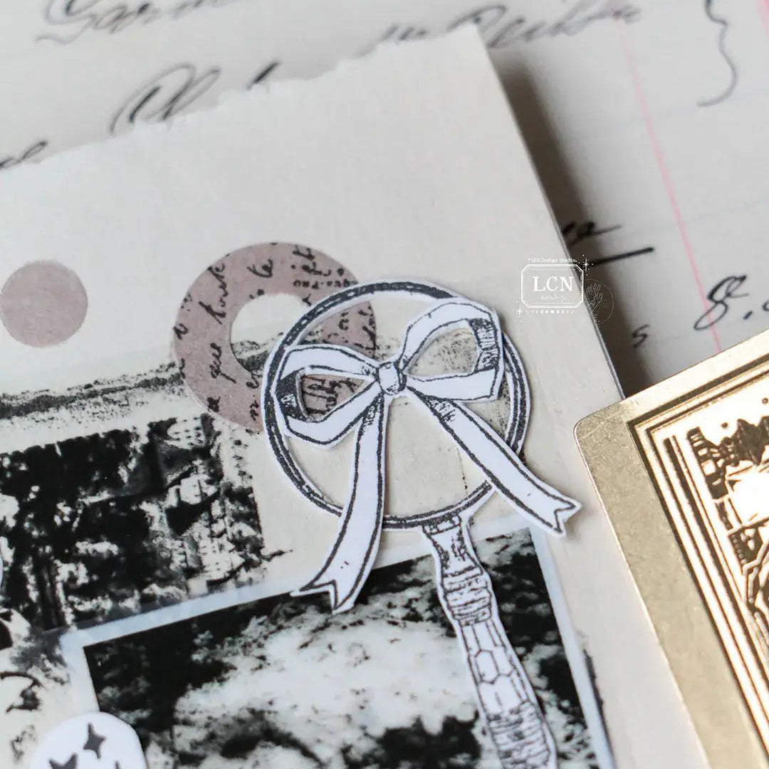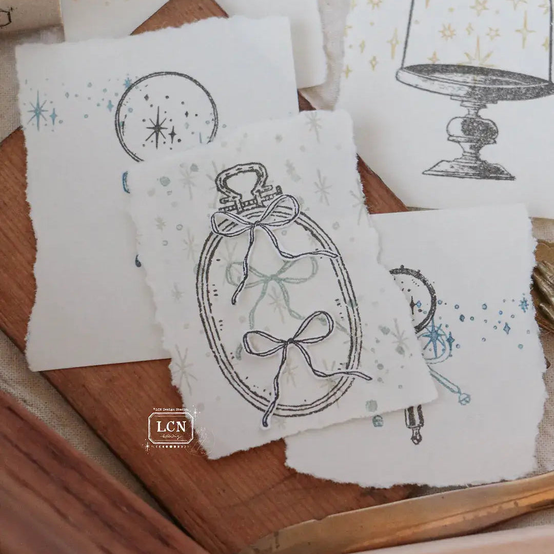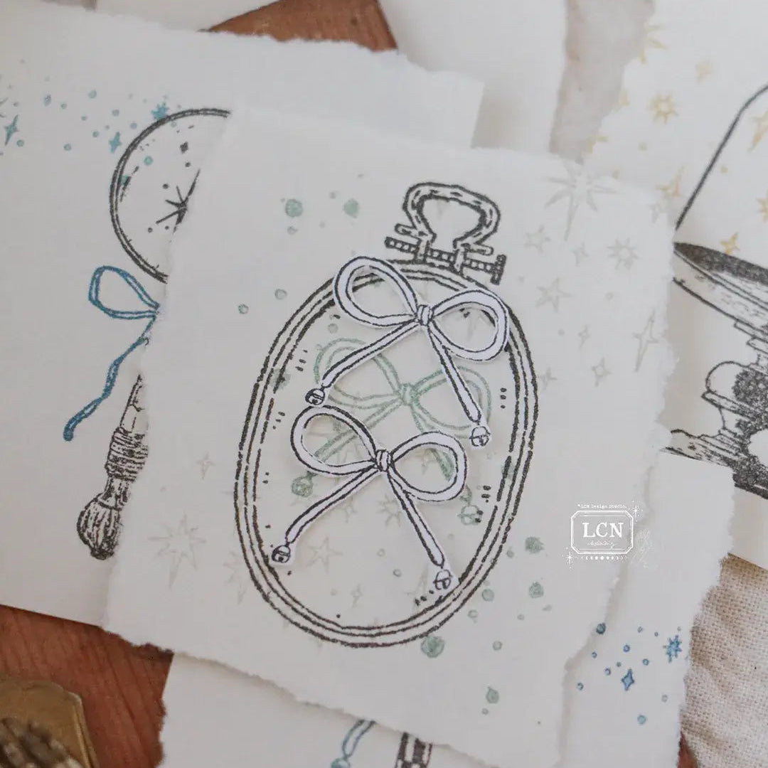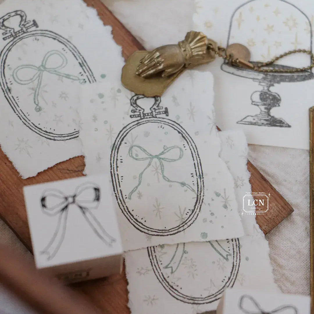 This rubber stamp set features three delicately illustrated bow designs, each drawn with a light, expressive line that captures the softness and gentle movement of tied ribbons. From loose, flowing knots to neatly tied bows, each design carries its own quiet charm.