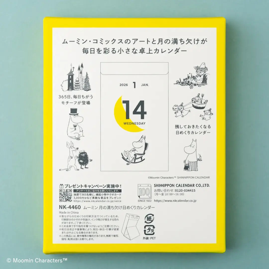 Join the beloved Moomin characters as they gaze at the ever-changing moon in this charming daily calendar. Each page reveals a different moon phase alongside a delightful Moomin illustration, inviting you to slow down and enjoy the gentle rhythm of each passing day.